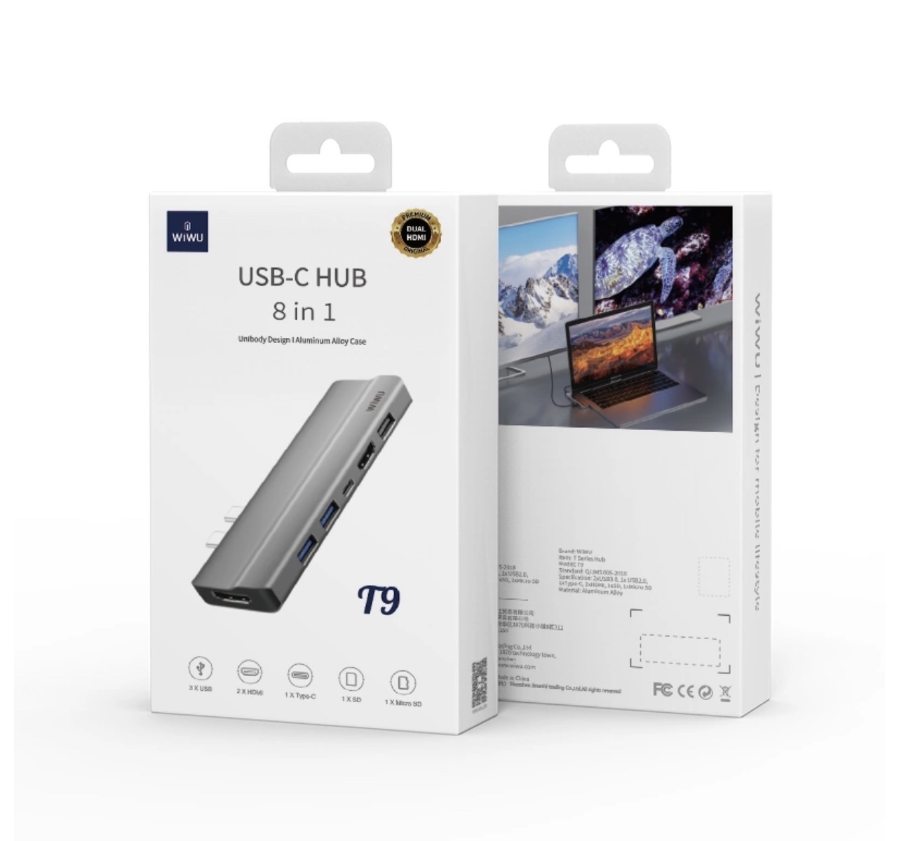 - Di động & Dễ sử dụng Thông tin chi tiết: Thương hiệu: WiWu Tên condut: Bộ điều hợp đa cổng HUB 7 trong 1 Type-C Mô hình sản phẩm: T9 Vật chất: Ngôi nhà nhôm, PCB, Đầu nối Đầu ra giao diện: 1x cổng USB Type-C, 3x cổng USB Type-A, 2x cổng HDMI 2x, 1x Cổng thẻ SD, 1x cổng thẻ TF Video độ phân giải (cổng đầu ra HD): Lên đến 4K UHD (3840x2160 @ 30Hz) hoặc 2K / 1080p / 720p / 480p / 360p Video độ phân giải (Thunderbolt 3 cổng): Lên đến 4K (3840x2160 @ 60Hz) Dữ liệu truyền tốc độ (Cổng USB 3.0 siêu tốc): Lên đến 5Gbps Tiêu chuẩn: Q / JMS 005-201