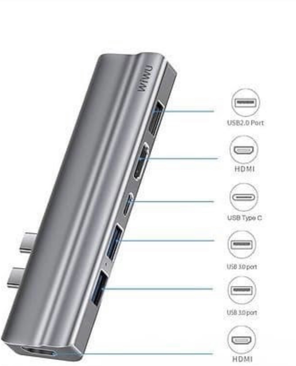 Hub #Wiwu Alpha 7 in 1 USB - C Hub #A731HC 3*USB3.0+ SD+TF+4K HDMI+100W PD Thương hiệu: #Wiwu Chất liệu: Hợp kim nhôm Thông số kỹ thuật: 3 cổng USB 3.0+1, 1 cổng TF, 1 cổng HDMI, PD, 1 cổng SD Đầu ra HDMI 4K: phản chiếu hoặc mở rộng màn hình của bạn với cổng HDMI của bộ chuyển đổi USB C và truyền trực tiếp video 4K UHD hoặc full HD 1080P tới HDTV, màn hình hoặc máy chiếu cho bữa tiệc hình ảnh như rạp chiếu phim. Hỗ trợ sạc PD: Ba cổng USB hỗ trợ tốc độ truyền tải, kết nối với #điện thoại thông minh, #máy tính bảng và #ổ cứng của bạn để truyền dữ liệu dễ dàng.