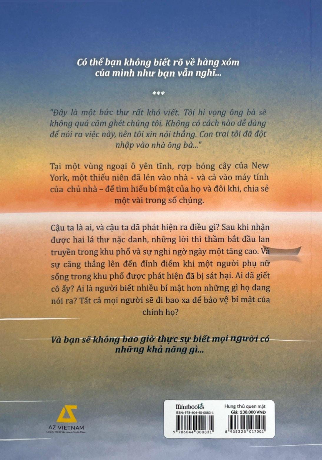 Mời các bạn độc giả đón đọc Hung Thủ Quen Mặt để tìm được câu trả lời.