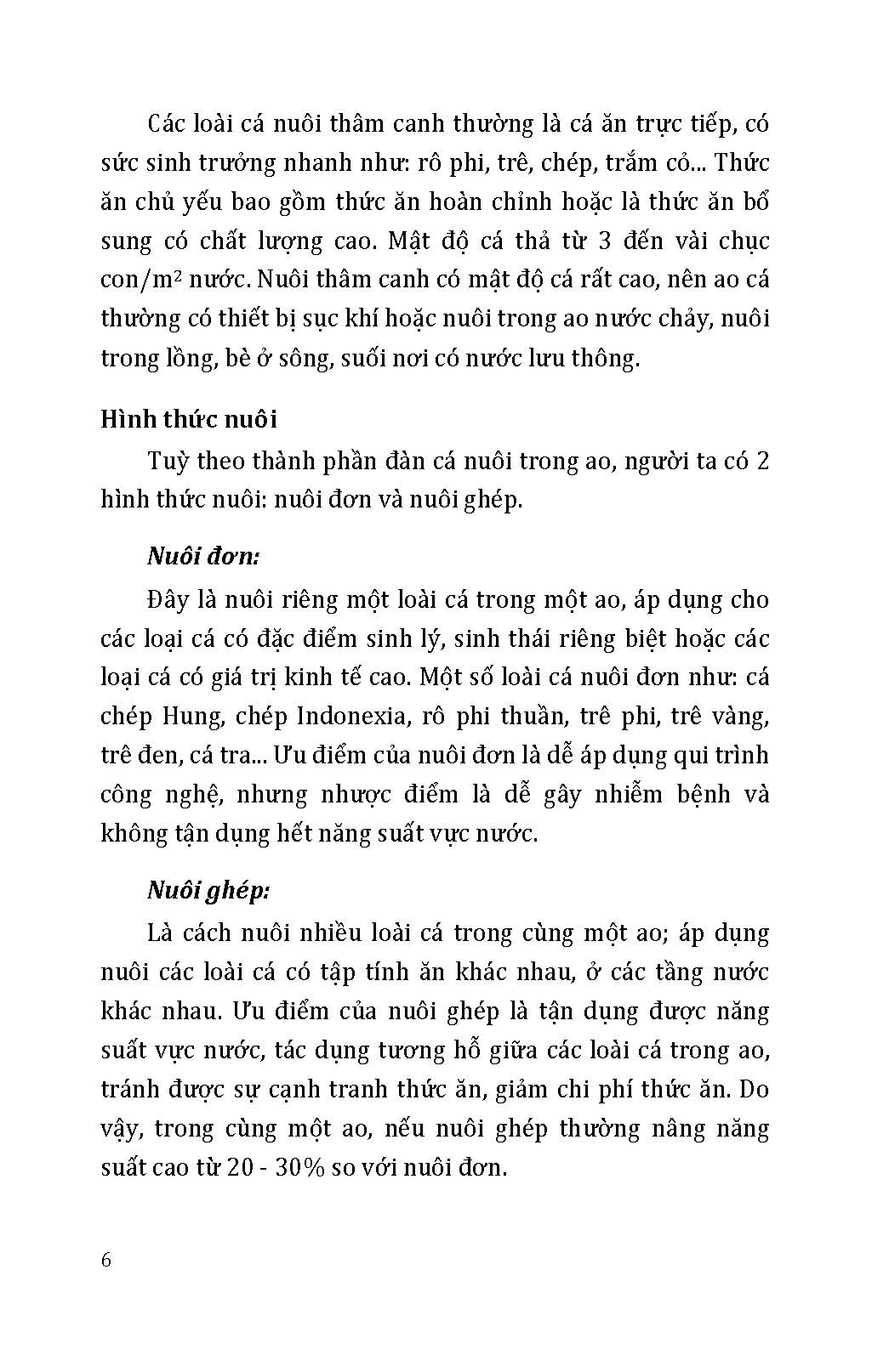 Hướng dẫn kỹ thuật nuôi cá trong các môi trường sống khác nhau như ao, hồ, ao nước tĩnh, ao nước chảy, ruộng lúa, nuôi thả cá giống; kỹ thuật nuôi ếch, lươn như đặc điểm, chuẩn bị giống, cách nuôi, phòng trị bệnh...