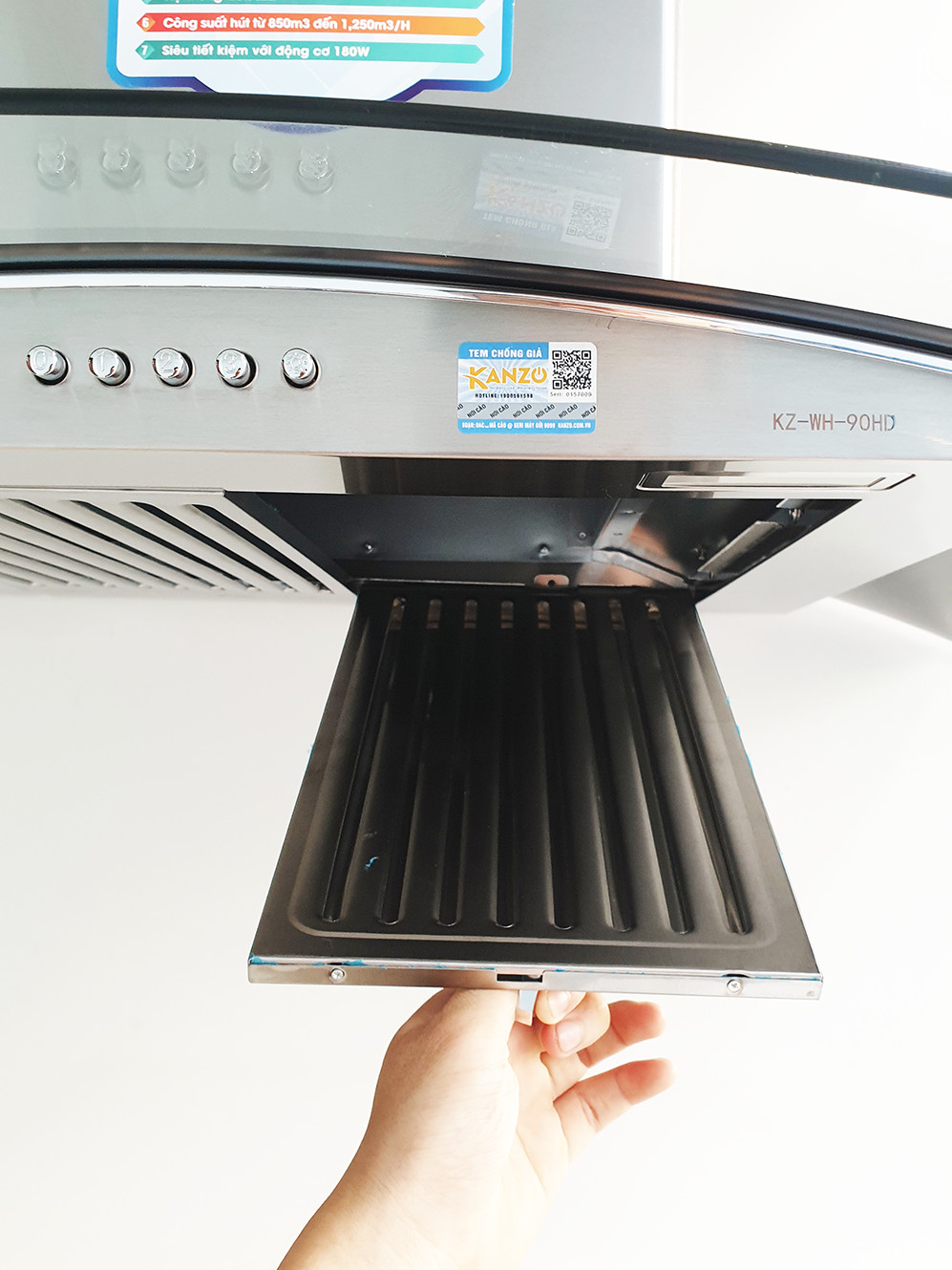 Nhận thấy nhu cầu có một cuộc sống chất lượng và mạnh khỏe hơn từ khách hàng, KANZO đem đến cho bạn và gia đình model máy hút mùi kính cong 900MM KZ-WH-90HD. Với những ưu điểm như công suất hút lớn, độ ồn thấp, dễ dàng điều khiển và vệ sinh,… máy hút mùi KZ-WH-90HD mang đến một không gian bếp luôn thoáng mát, trong lành.