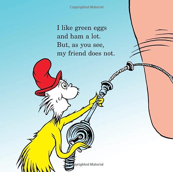 In this sweet, sturdy board book, Sam-I-Am shares the story of how he persuades his friend to try green eggs and ham. (What's Sam's secret? He never stops trying, of course!) Written in rhymed verse, this funny board book is an ideal introduction to the story for toddlers and preschoolers too young for the classic Beginner Book. Now everyone in the family--even pre-readers--can share in the fun and learn a valuable life lesson about trying new things!