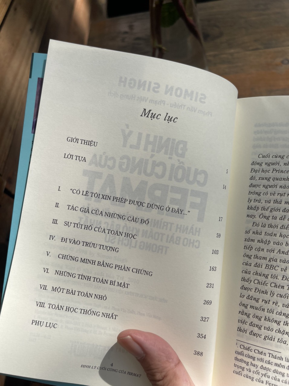 Với những dòng viết tay đó, nhà toán học người Pháp ở thế kỷ XVII Pierre de Fermat đã chính thức buông lời thách đấu đối với những thế hệ sau ông. Thoạt nhìn thì cái được gọi là Định lý cuối cùng của Fermat có vẻ khá đơn giản; thế nhưng việc chứng minh nó đã trở thành Chiếc Chén Thánh của toán học, làm khổ sở những bộ óc thông minh nhất trong suốt hơn 350 năm. Trong cuốn sách Định lý cuối cùng của Fermat, Simon Singh đã kể lại câu chuyện cực kỳ hấp dẫn của hành trình đi tìm chén thánh, về những cuộc đời đã hiến trọn cho nó, hy sinh vì nó, cũng như được cứu vớt nhờ nó. Đây đúng là một câu chuyện làm mê đắm lòng người sẽ thay đổi hoàn toàn quan niệm của bạn về toán học.