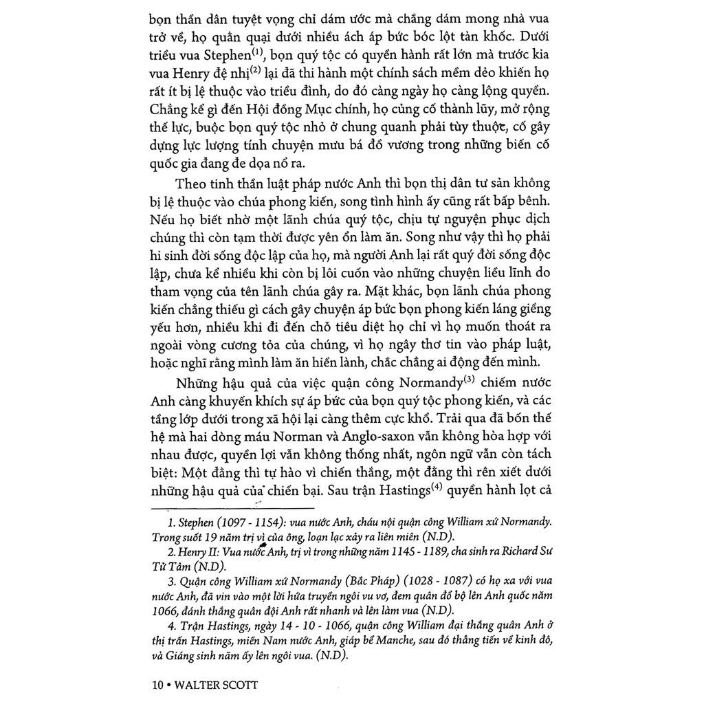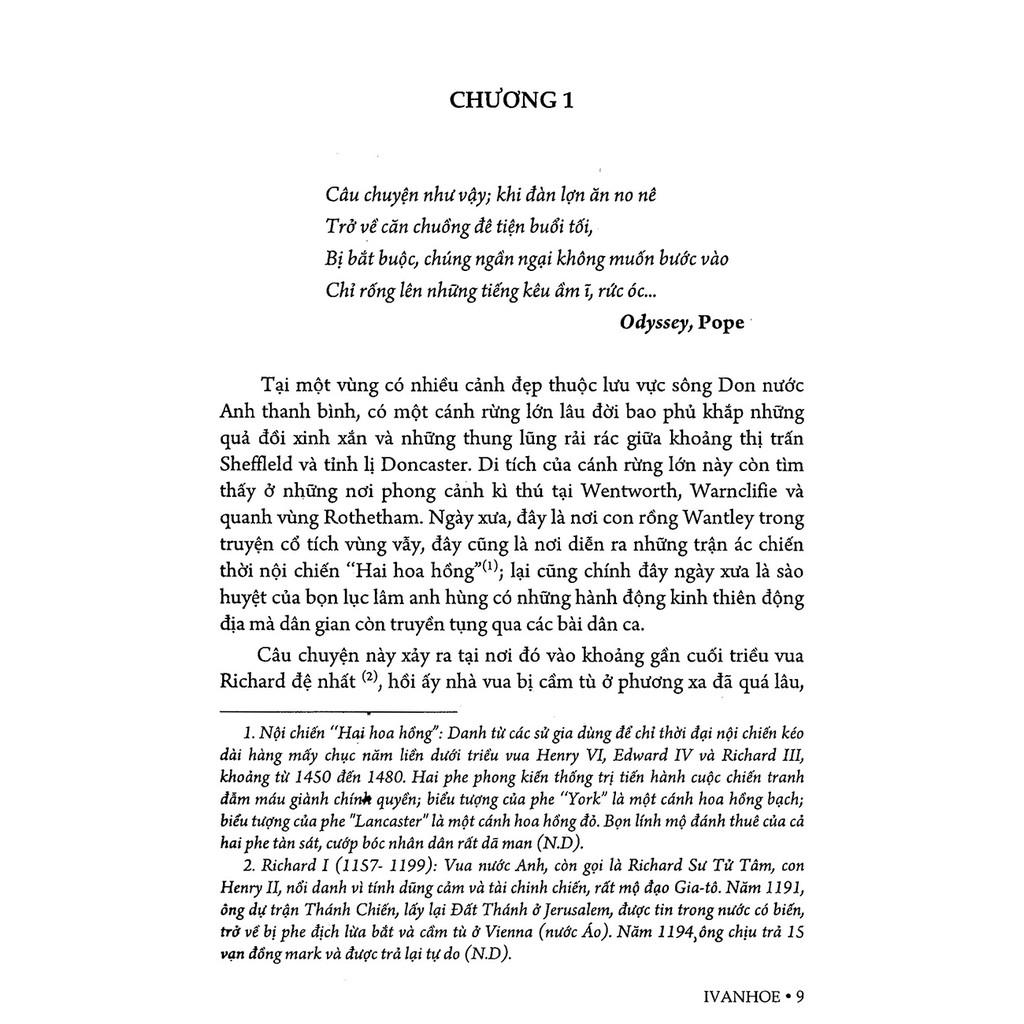 Ivanhoe------------ Sách - Ivanhoe Ivanhoe là tiểu thuyết hư cấu lịch sử nổi tiếng nhất của nhà văn Walter Scott. Truyện lấy bối cảnh là nước Anh thế kỉ XII, một thời kì loạn lạc với những mâu thuẫn c...