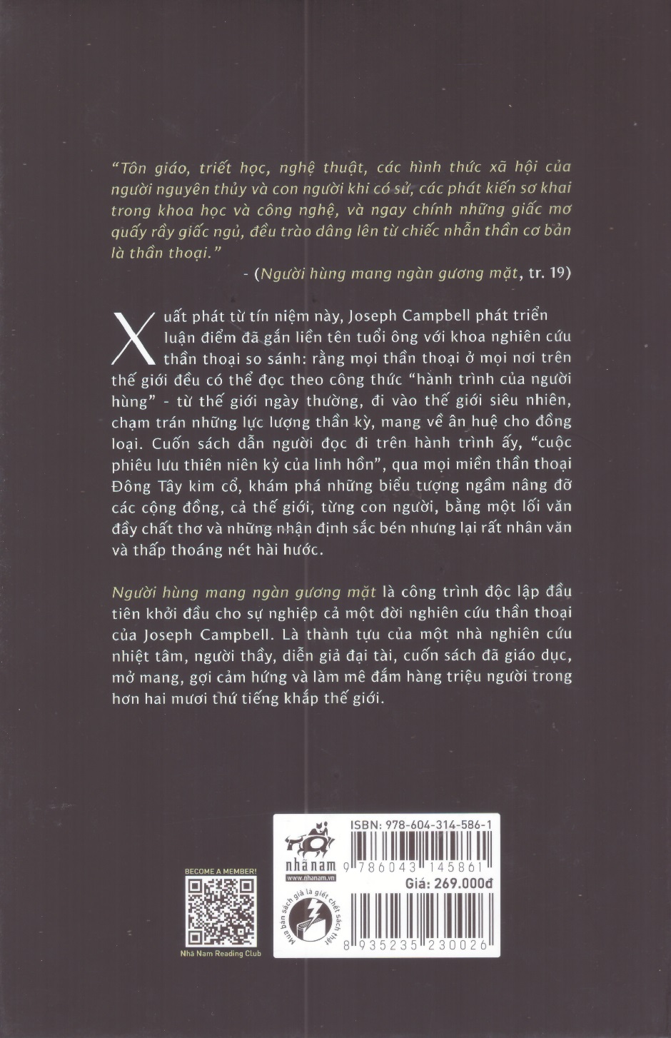 Người hùng mang ngàn gương mặt là công trình độc lập đầu tiên khởi đầu cho sự nghiệp cả một đời nghiên cứu thần thoại của Joseph Campbell. Là thành tựu của một nhà nghiên cứu nhiệt tâm, người thầy, diễn giả đại tài, cuốn sách đã giáo dục, mở mang, gợi cảm hứng và làm mê đắm hàng triệu người trong hơn hai mươi thứ tiếng khắp thế giới.