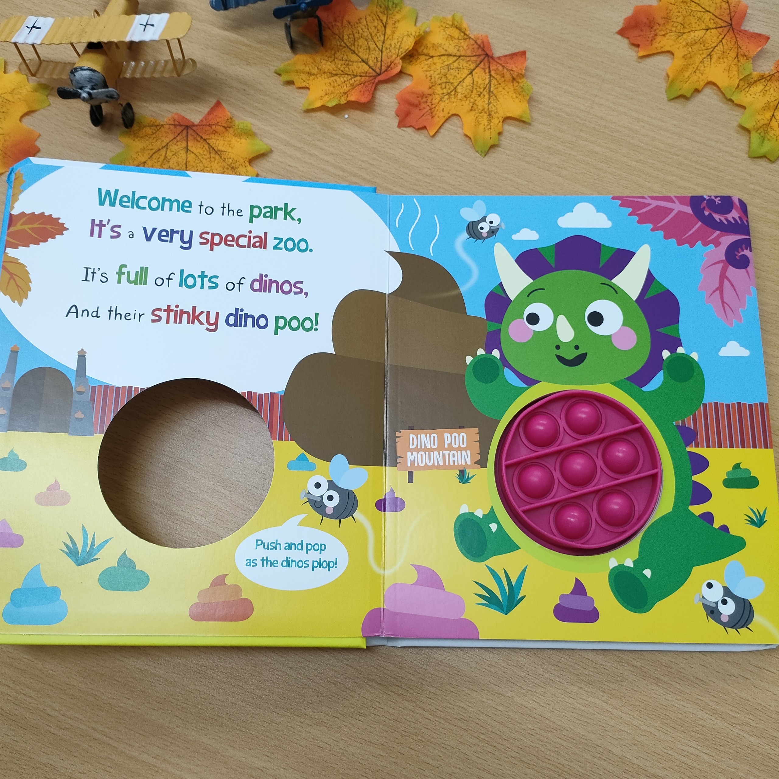 A push and pop sensory story time book for read aloud fun!  In this laugh-out-loud story about pooping dinosaurs, there's an innovative silicone popper fidget toy for little hands to push, pop and exp...