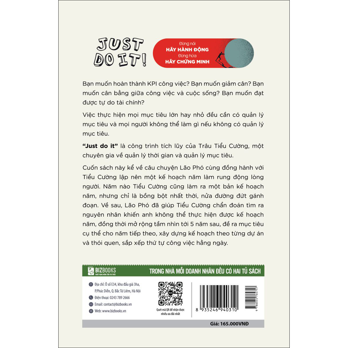 Cùng với cuốn “Nhật ký thăng chức của Tiểu Cường” xuất bản năm 2009, Just do it đã tạo nên đề cương hệ thống quản lý thời gian cơ bản cho mọi người. Vậy nên, nếu bạn muốn xây dựng kế hoạch cho cuộc đời chính mình thì Just do it chính là “lối thoát” mở đường cho bạn, giúp bạn quản lý hiệu quả mục tiêu và thời gian, sống đúng cách mà bản thân mong muốn!