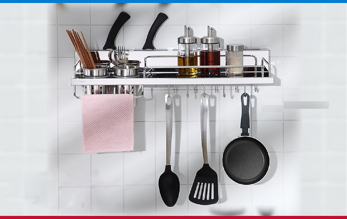 Mô tả chi tiết: Giá treo dụng cụ nhà bếp đa năng giúp bạn sắp xếp gọn gàng các vật dụng như dao, kéo, muỗng, thìa, phới lồng, bàn chải rửa chén, và nhiều loại