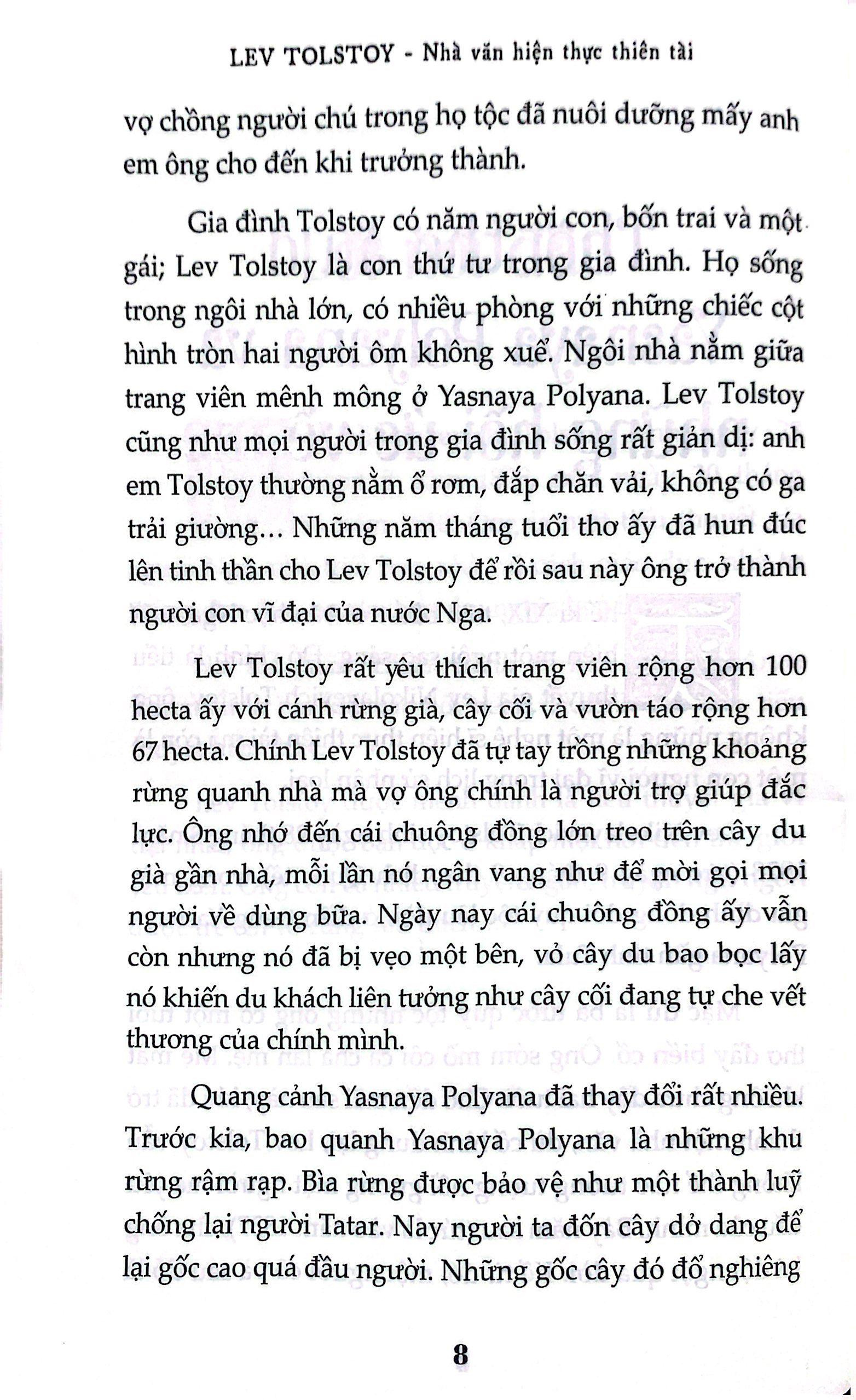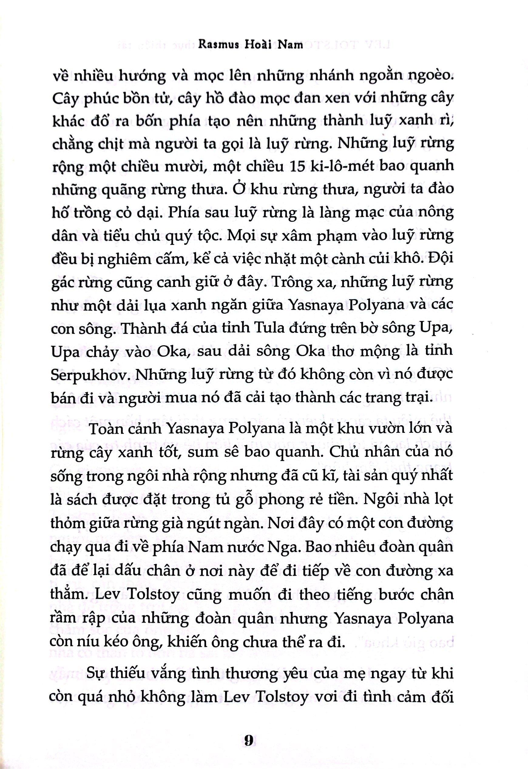 Cuốn sách gồm những câu chuyện viết về cuộc đời và sự nghiệp sáng tác của đại văn hào người Nga Lev Nikolayevich Tolstoy, từ những ngày thơ ấu ở Yasnaya Polyana đến những ngày trải qua biến cố của gia đình ở Moscow. Từ khi tình yêu văn học bắt đầu nảy nở cho đến khi ông tạo dựng cho mình một hành trang quý giá trên con đường cầm bút và viết nên những tác phẩm để đời.
