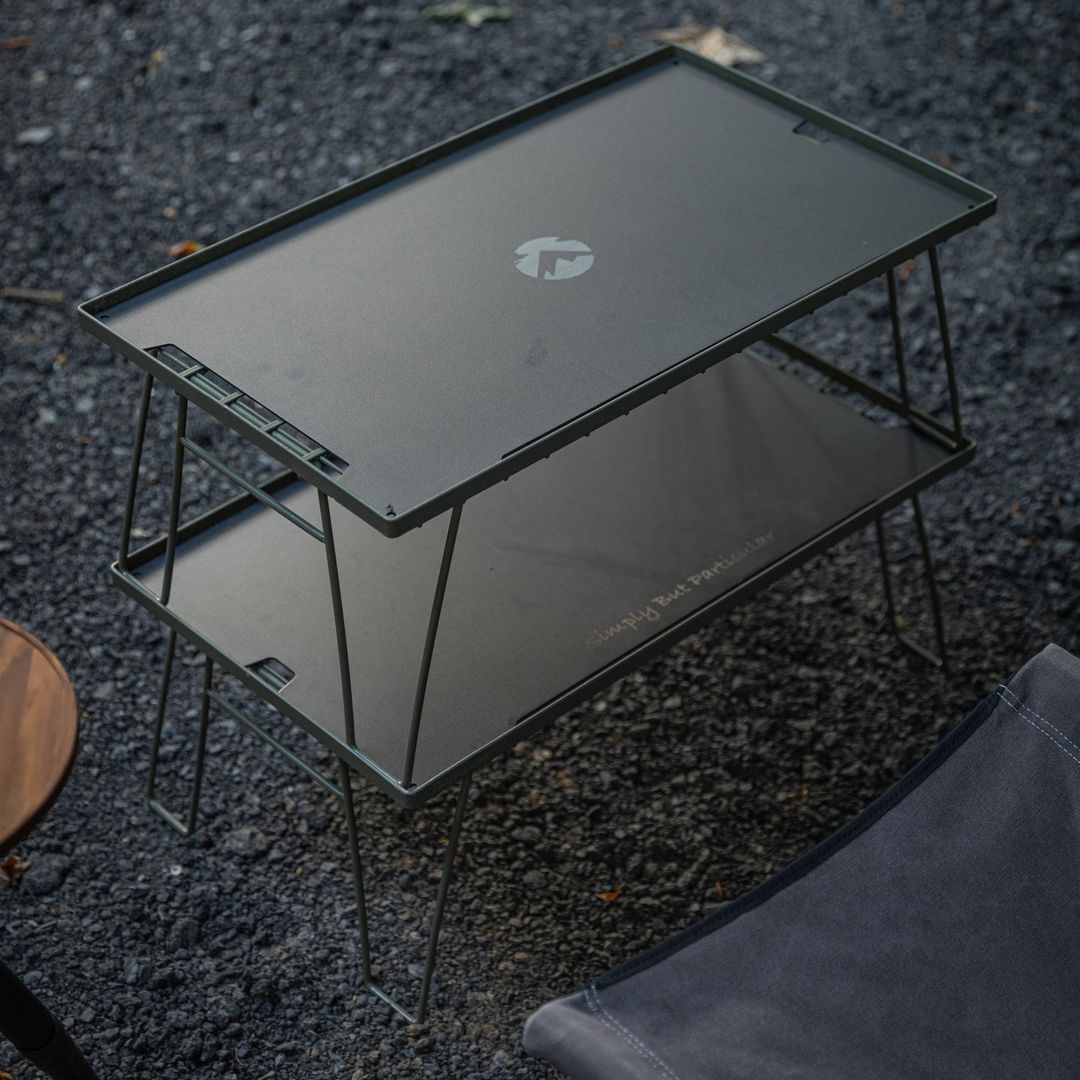 Kệ Campingmoon T-230 được làm từ chất liệu sắt phun sơn tĩnh điện đen/ xanh rêu, có thể gấp gọn kèm túi đựng vải Canvas dễ dàng cho mang đi cắm trại, dã ngoại.