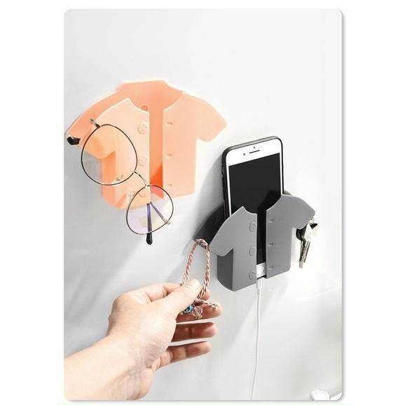 ✨Kệ Dán Tường Để Điện Thoại Khi Sạc Hình Chiếc Áo, Để Điều Khiển Gắn Tường Có Móc Treo, Có Miếng Dán 3M - Taky Home 4055