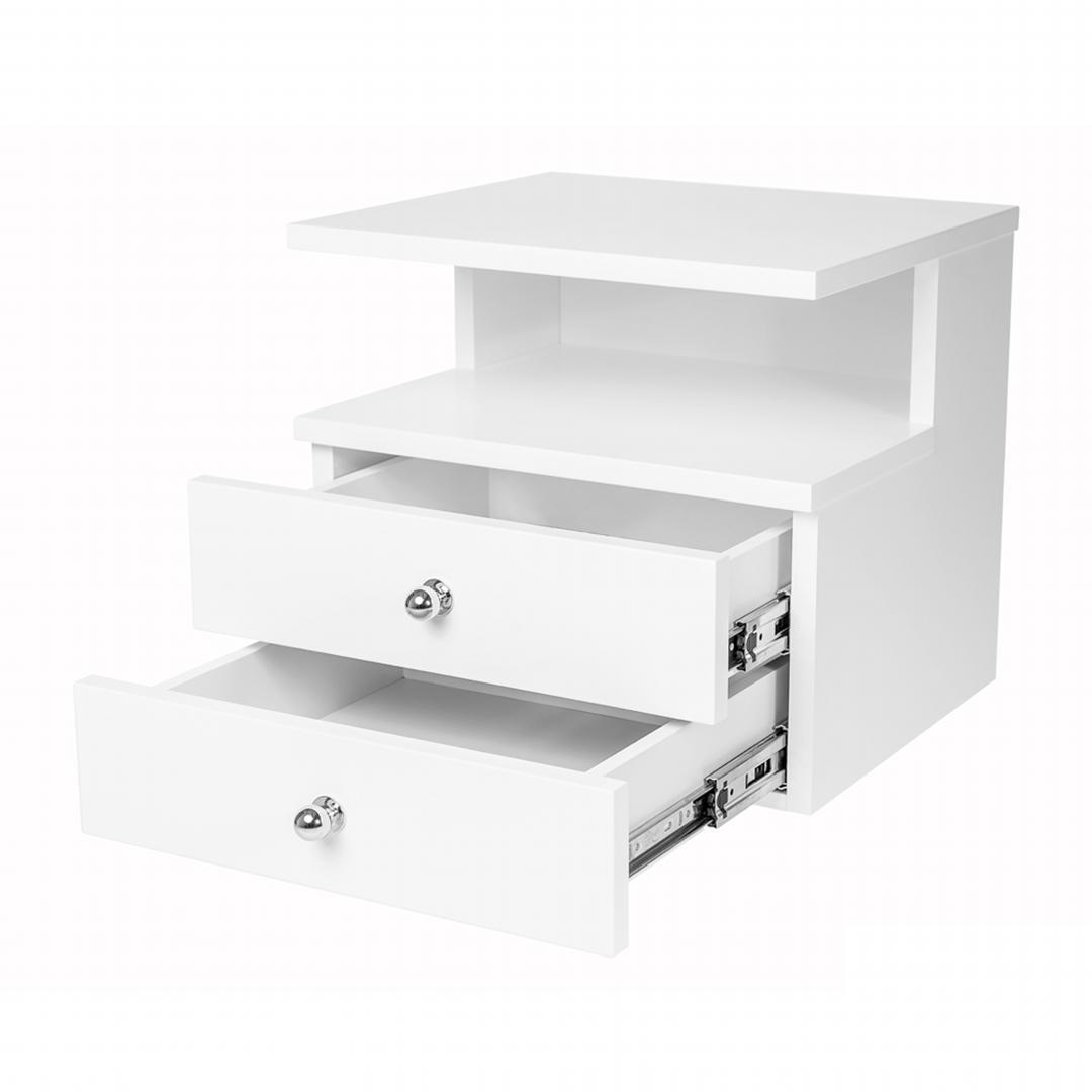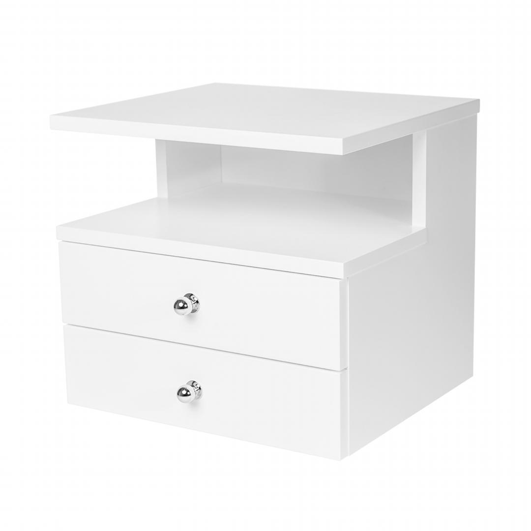 - Kệ tủ đầu giường hình vuông có hộc kéo - Chất liệu: ván gỗ HMR (viết tắt của High Moisture Resistence) lõi xanh chống ẩm, chống thấm nước phủ melamine, phun sơn trắng bóng