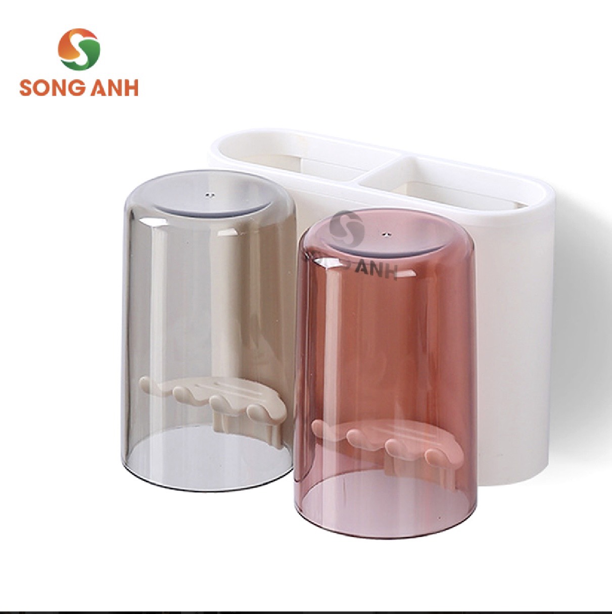 Kệ Để Bàn Chải Kem Đánh Răng 2 Cốc 3 Cốc, Giá Để Đồ Nhà Tắm Song Anh Cao Cấp Không Cần Khoan Tường- Hàng Chính Hãng