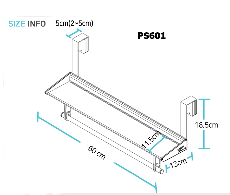 - Model: PS608: Kệ để đồ 1 tầng + móc treo đồ - Vật liệu: Nhôm, polycarbonate, inox - Kích thước: 600x 130mm - Đặc tính sản phẩm: Có thể di chuyển vị trí kệ