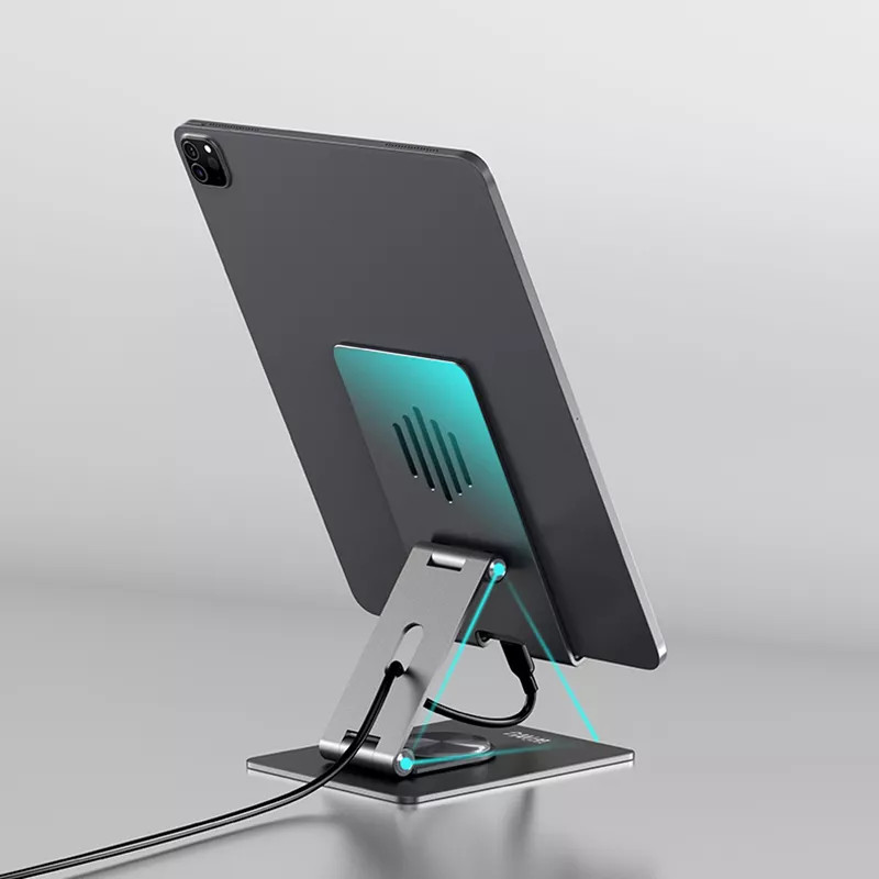 Đặc điểm nổi bật: - Chất liệu hợp kim nhôm nguyên khối cao cấp - Kết hợp Silicon pad phần đế, mặt tựa tăng cường bảo vệ ipad, máy tính bảng - Thiết kế công