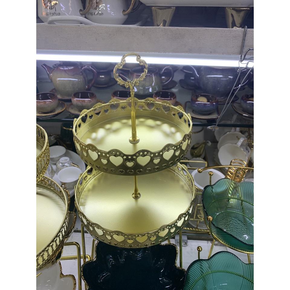 Kệ đựng hoa quả, bánh kẹo, mỹ phẩm hợp kim mạ vàng cao cấp 2022 | KỆ 2 ĐĨA HỢP KIM MẠ VÀNG CAO CẤP