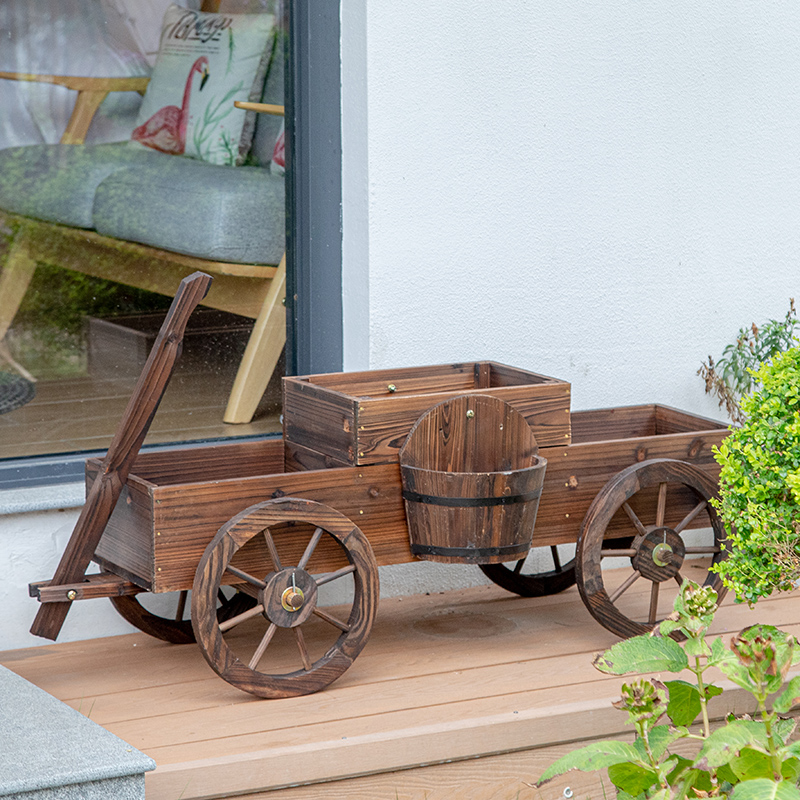Kệ gỗ để chậu hoa vintage ngoài trời bằng gỗ thông tự nhiên kiểu dáng đẹp mắt, kệ trưng bày hoa cây cảnh ngoài trời