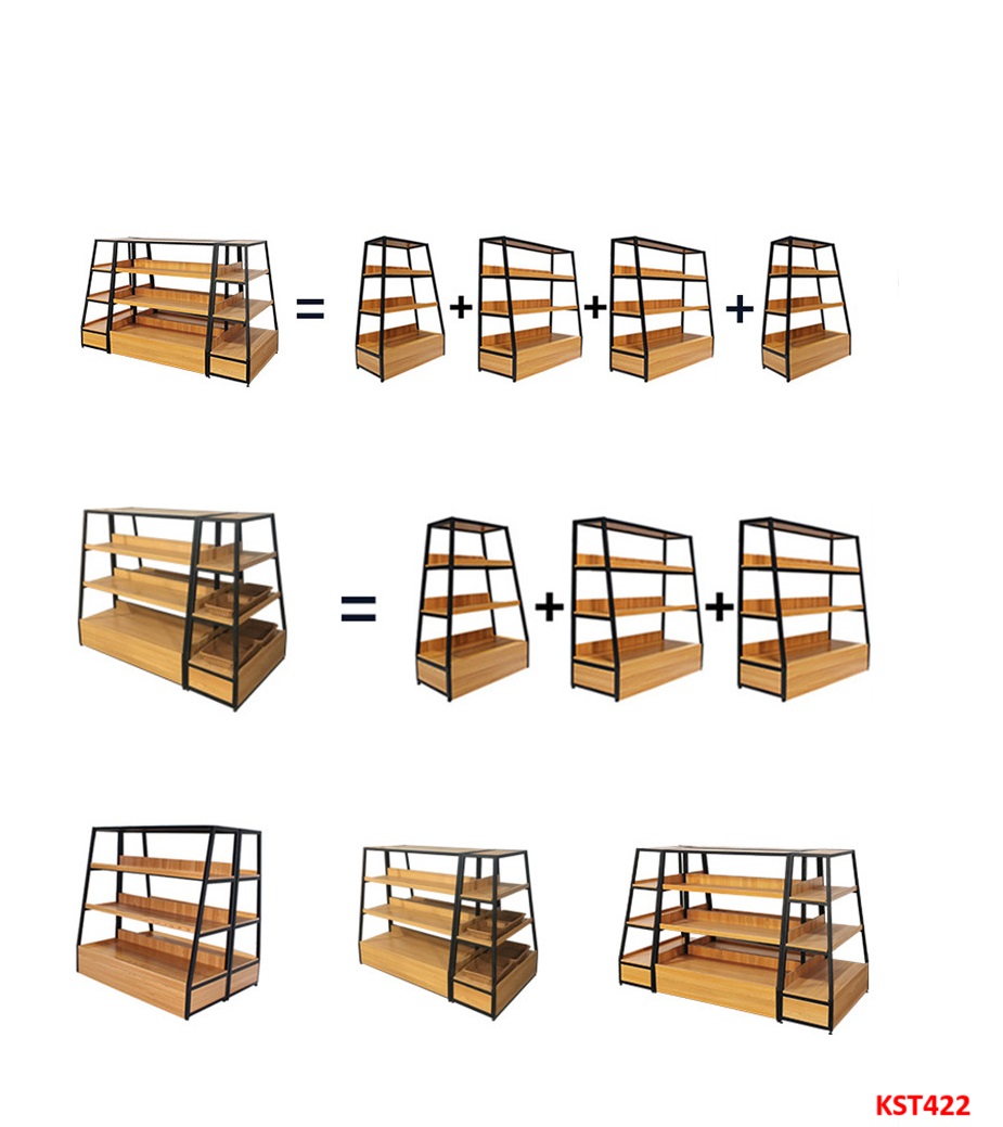 Kệ gỗ trưng bày rau củ hoa quả được sử dụng phổ biến nhất trong các siêu thị, cửa hàng tiện lợi vì thiết kế đa dạng cũng như tiện ích nó mang lại. Chúng ta đều biết rằng rau củ, hoa quả là những nông sản có đặc điểm tươi sống, dễ bị hư hỏng dập nát cho nên việc bảo quản chúng là vô cùng quan trọng và sự ra đời của mẫu kệ này cực kỳ hữu ích.
