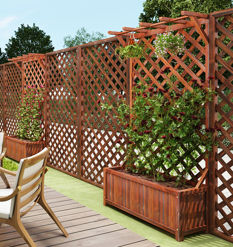 Kệ vách ngăn gỗ thông trang trí sân vườn, phòng khách, ban công có giá treo chậu hoa cây cảnh vintage