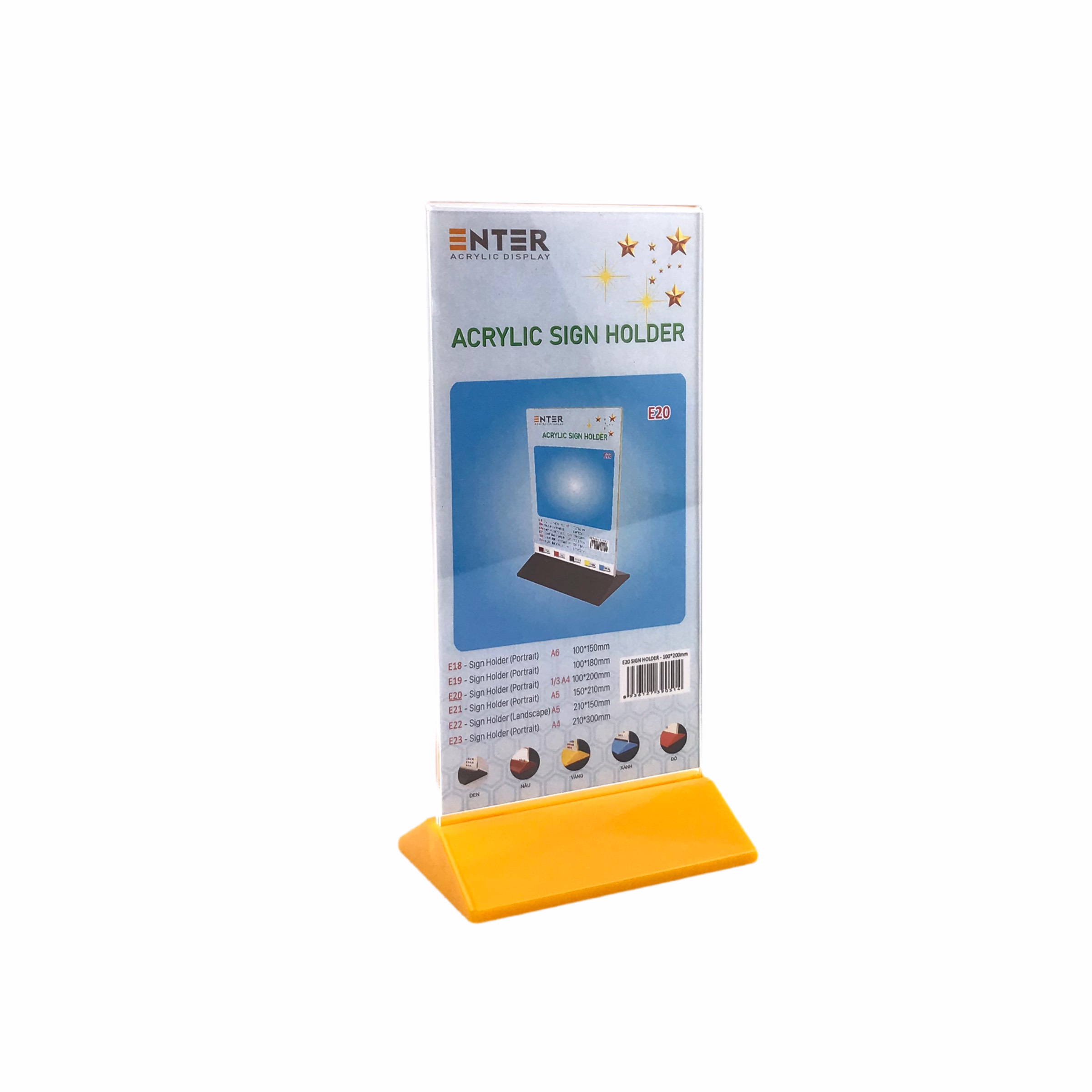 KỆ MICA 2 MẶT A5 ĐỨNG E22 (KT: 21cm x 15cm) Lưu ý: Sản phẩm được giao mẫu bìa ngẫu nhiên tùy theo từng đợt nhập hàng. Đế nhiều màu, Phần trên mica 2 ly