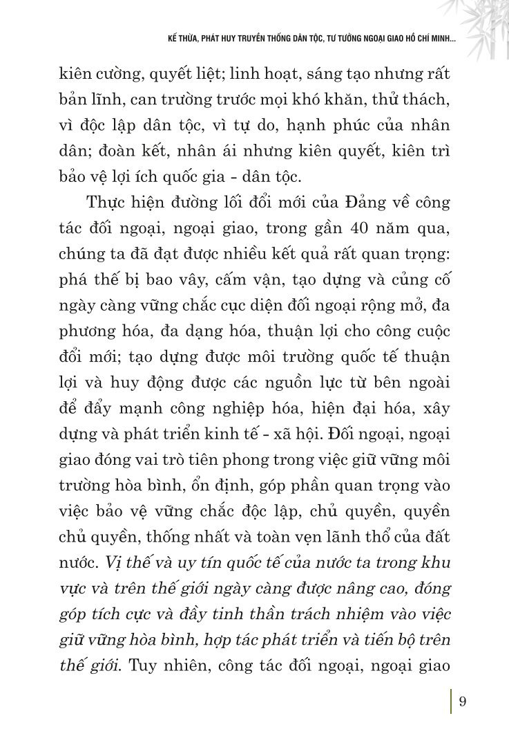 ✨Kế thừa, phát huy truyền thống dân tộc, tư tưởng ngoại giao Hồ Chí Minh, quyết tâm xây dựng và phát triển nền đối ngoại, ngoại giao toàn diện, hiện đại, mang đậm bản sắc "cây tre Việt Nam'' (bản in 2024)