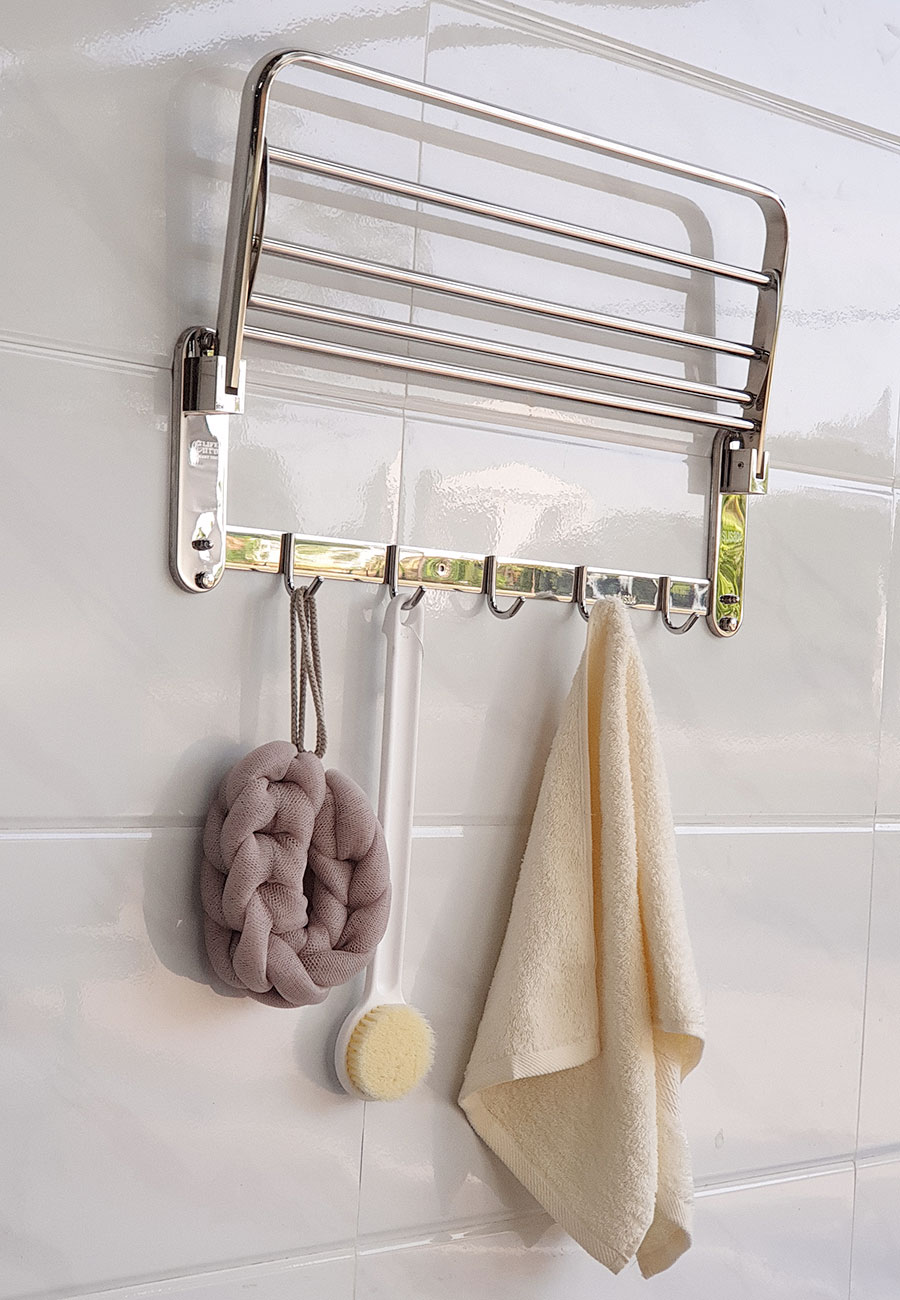 Kệ có thể gấp gọn khi cần. Chứa nhiều đồ hơn, giúp phòng tắm ngăn lắp và gọn gàng.