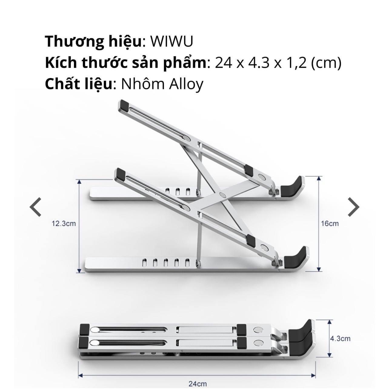 Giá đỡ Laptop Stand WiWu S700 1. Thương hiệu : Wiwu 2. Mô tả sản phẩm - Chất liệu : kim loại - Các chỗ tiếp xúc có đệm silicone chống trầy, chống trượt -