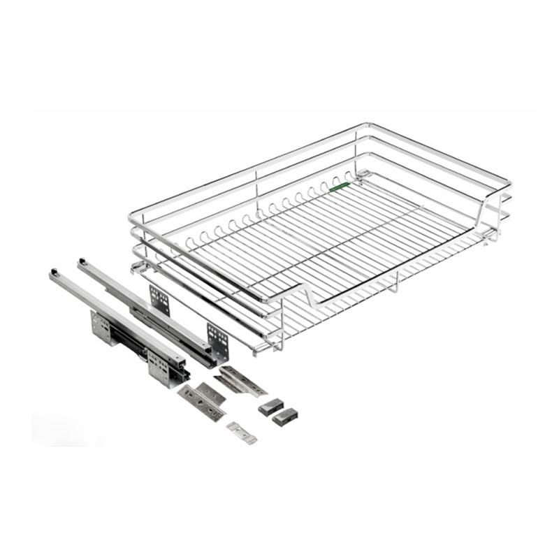 Thông tin sản phẩm: - Màu sắc: Inox mờ - Chất liệu: Inox 304, nan dẹt Tính năng sản phẩm: - Sử dụng ray âm giảm chấn cao cấp, có lắp che ray - Có