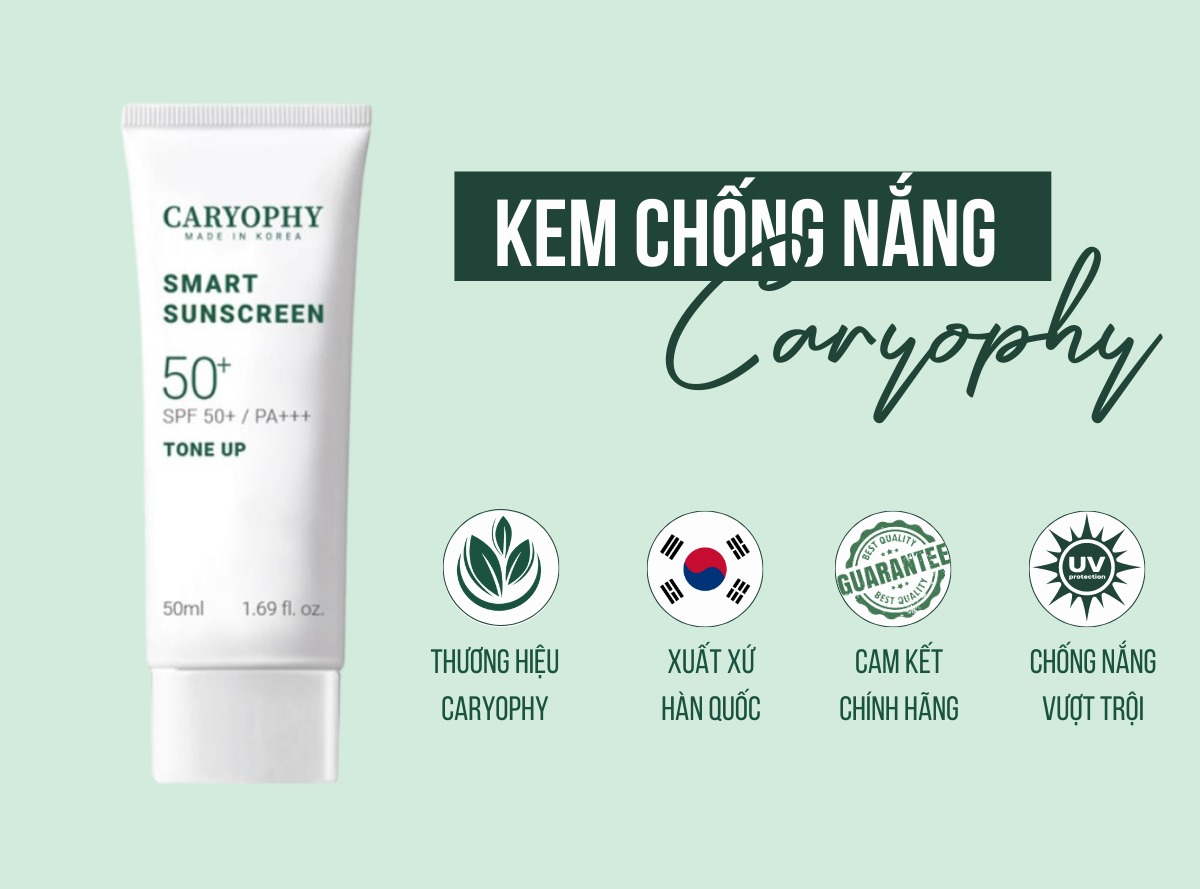 - Kem chống nắng Caryophy Smart Sunscreen là sản phẩm thế hệ mới có những công dụng vượt trội, bảo vệ da hoàn hảo.
