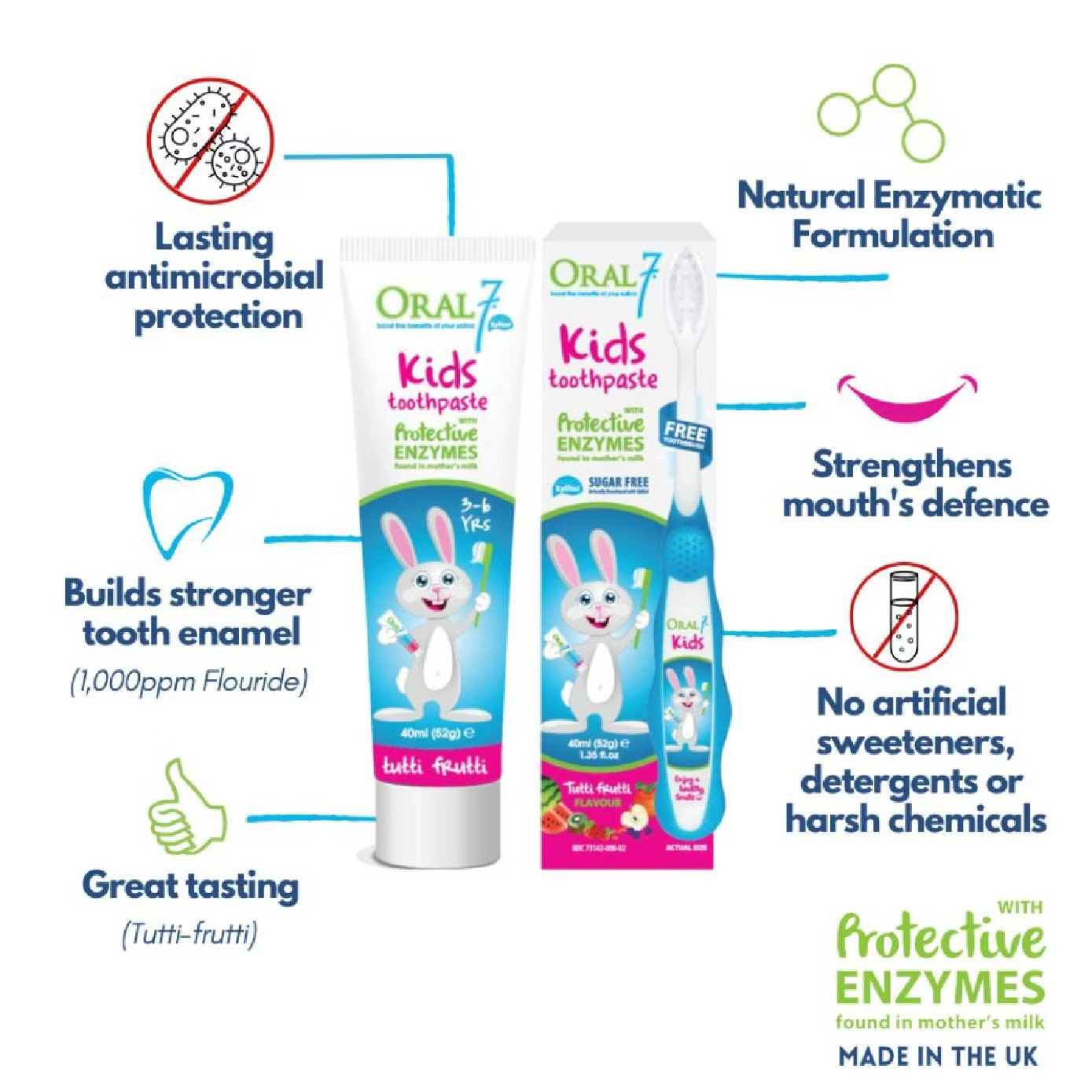 - Theo lời khuyên của hầu hết các nha sĩ, chúng ta nên thay đổi bàn chải đánh răng cứ sau 3 tháng sử dụng, vì vậy sản phẩm bao gồm một bàn chải đánh răng mới trong mỗi hộp kem đánh răng Oral7 KIDS để thuận tiện thêm cho bạn. Đối tượng nên dùng kem đánh răng trẻ em Oral7
