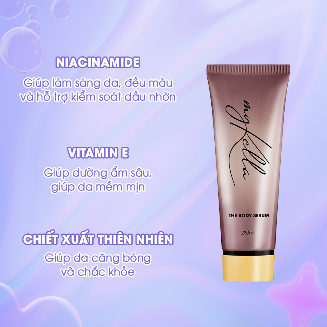 THÔNG TIN SẢN PHẨM Kem dưỡng ẩm The Body Serum myKella là giải pháp giúp làn da trắng mịn, căng bóng và thơm ngát, căng tràn sức sống. Nhờ công thức giàu dưỡng chất với