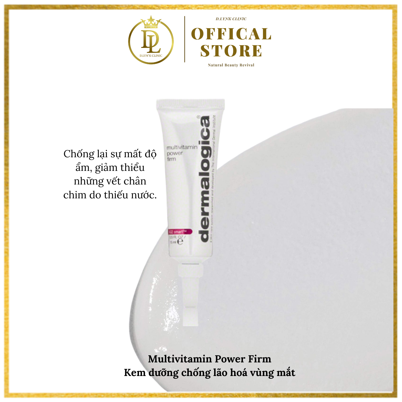 Kem dưỡng chống lão hóa vùng mắt Dermalogica Multivitamin Power Firm 15ml Multivitamin Power Firm giúp chỉnh sửa các dấu hiệu của lão hóa sớm với hỗn hợp MultiVitamin. Gia tăng tính đàn hồi và độ săn chắc của da bằng việc kích thích sự tổng hợp collagen và đẩy mạnh sự liên kết giữa các tế bào. Quét sạch sự xâm nhập của các gốc tự do giúp bảo vệ da khỏi những tác động của môi trường bên ngoài. Bảo vệ chống lại sự mất độ ẩm, giảm thiểu những vết chân chim do thiếu nước. THÔNG TIN SẢN PHẨM