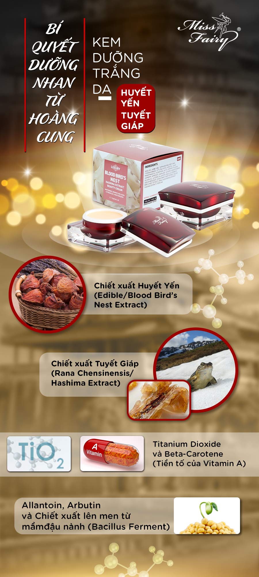 Kem dưỡng trắng da Huyết Yến Tuyết Giáp Miss Fairy – Bí quyết dưỡng trắng hoàn hảo từ hoàng cung Sở hữu làn da trắng sáng rạng rỡ không tì vết an toàn và nhanh