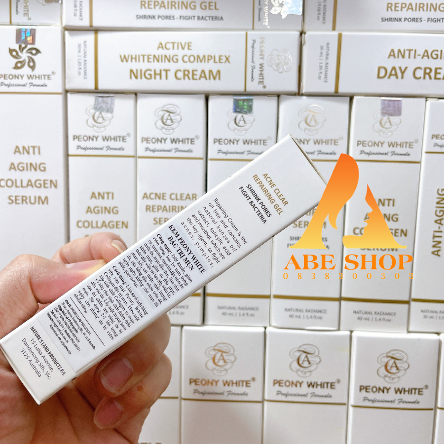 Bôi Kem Peony White Mụn - Acne Clear Repairing Cream cao cấp hàng ngày bạn sẽ tạm biệt nỗi lo về mụn mà không cần phải dùng quá nhiều loại mỹ phẩm khác nhau.