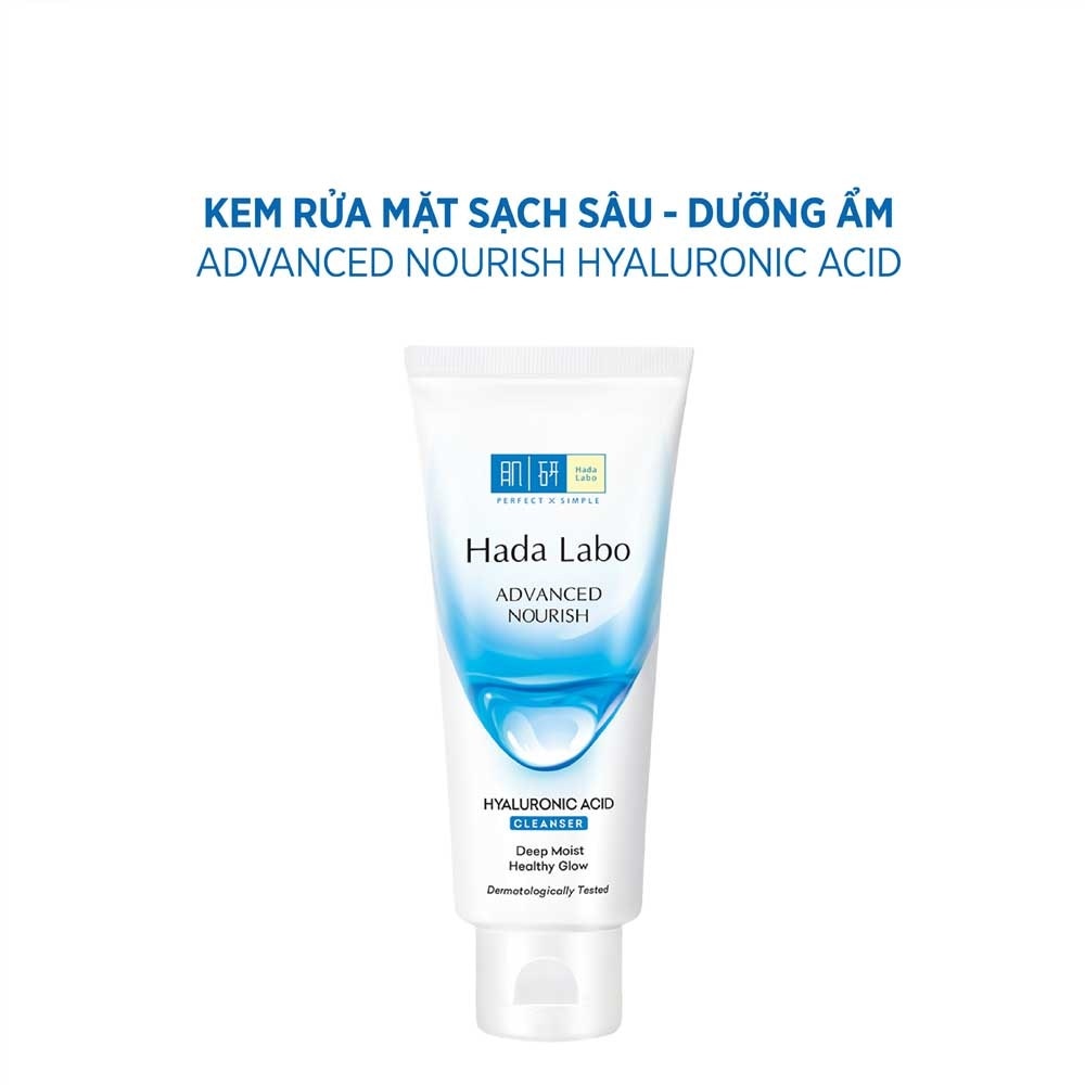 - Với thông điệp Đủ ẩm quyết định chất da đẹp, kem Rửa Mặt Hada Labo Advanced Nourish sẽ giúp các bạn dưỡng da ẩm mượt, sáng mịn, tươi trẻ mỗi ngày. Đồng thời, bọt mịn nhẹ nhàng sẽ rửa sạch lớp tế bào chết, bụi bẫn, bã nhờn ẩn sâu trong lỗ chân lông.