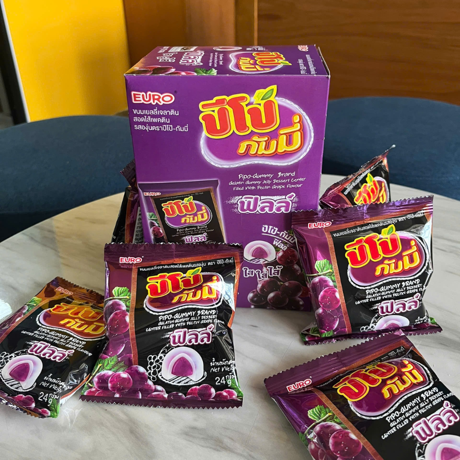 ✨Kẹo Dẻo Pipo Gummy Vị Nho – Dẻo Dai, Ngọt Thanh – Gói 18g [Hàng Thái Lan]