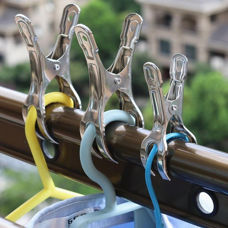 Kẹp inox chống gió đa năng Chất liệu inox chất lượng cao, phần đáy có thiết kế lỗ chống gió Kích thước thông dụng : 11CM Trọng lượng : 30.5g 1 set có 5 cái
