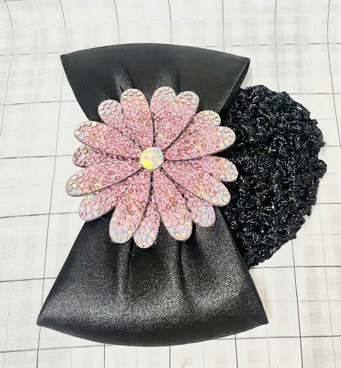 ✨KẸP TÓC BÚI LƯỚI MÀU ĐEN ĐÍNH HÌNH BÔNG HOA ĐÁ MÀU TÍM