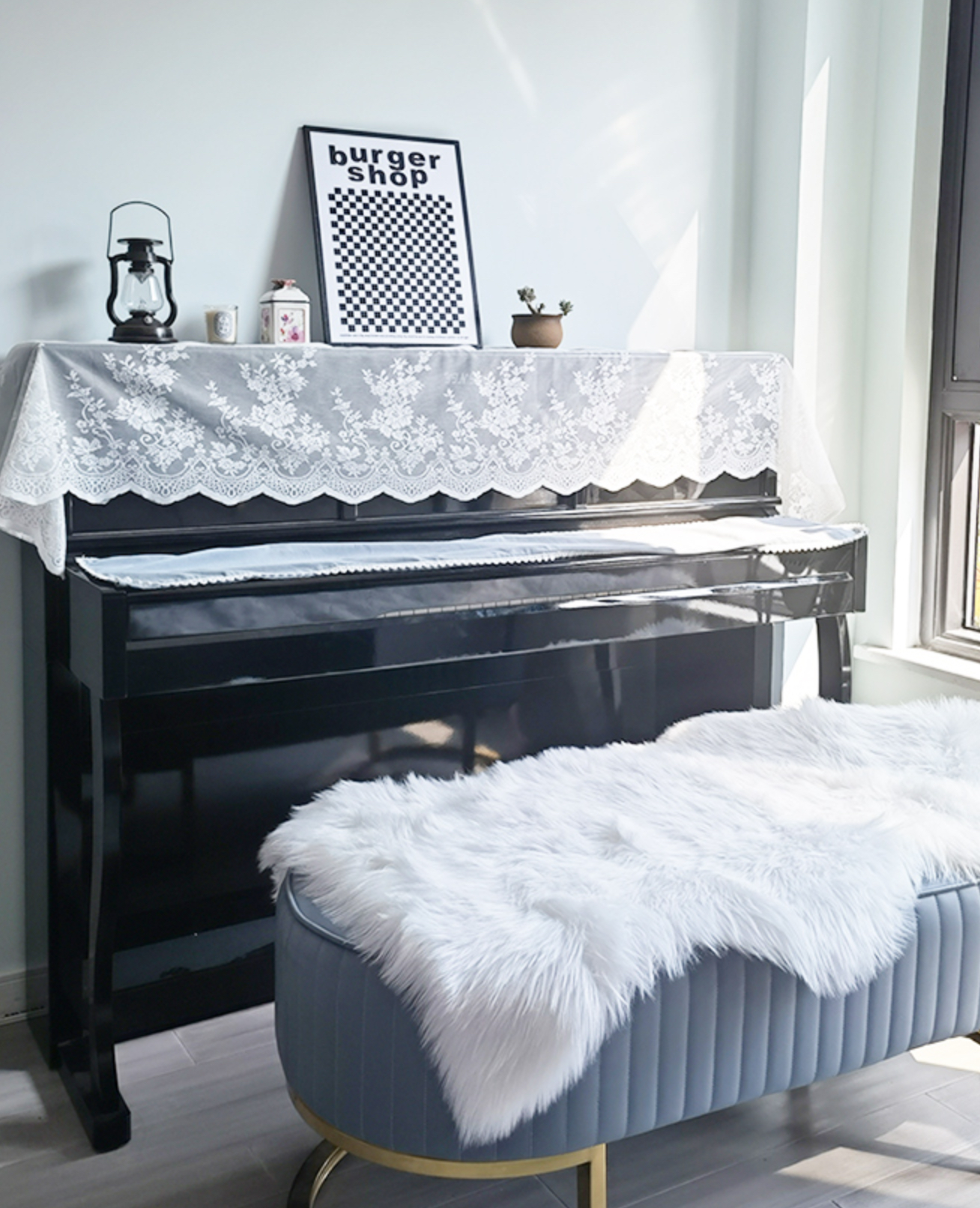 Khăn phủ đàn piano là loại phụ kiện không thể thiếu dành cho người chơi piano,vừa giúp bảo vệ đàn và làm cây piano của bạn trở nên đẹp hơn.   Khăn phủ với chất liệu vải cao cấp nhập khẩu từ Hàn quốc,màu sắc trang nhã, giúp cây đàn càng thêm sang trọng,tô điểm cho không gian sống của gia đình bạn.     Chất liệu vải cao cấp, không xù, không bai, không bong tróc, đường may chắc chắn, rất dễ vệ sinh     Giúp hạ nhiệt cho đàn khi đặt đàn tại nơi nhiệt độ cao.     Giúp hút ẩm khi đặt đàn trong phòng lạnh hoặc nơi có độ ẩm thấp.     Tránh bụi bẩn cho đàn. Giữ được độ bóng của đàn, tránh trầy xước. Tạo sự sang trọng và quý phái cho đàn và không gian ngôi nhà bạn. Kích thước lớn phủ vừa cho đàn piano cơ và tất cả các loại đàn piano điện 88 phím Khăn phủ đàn có kích thước : dài 1m9 x rộng 90cm Vui lòng kiểm tra kích thước của nắp ghế trước khi đặt hàng: