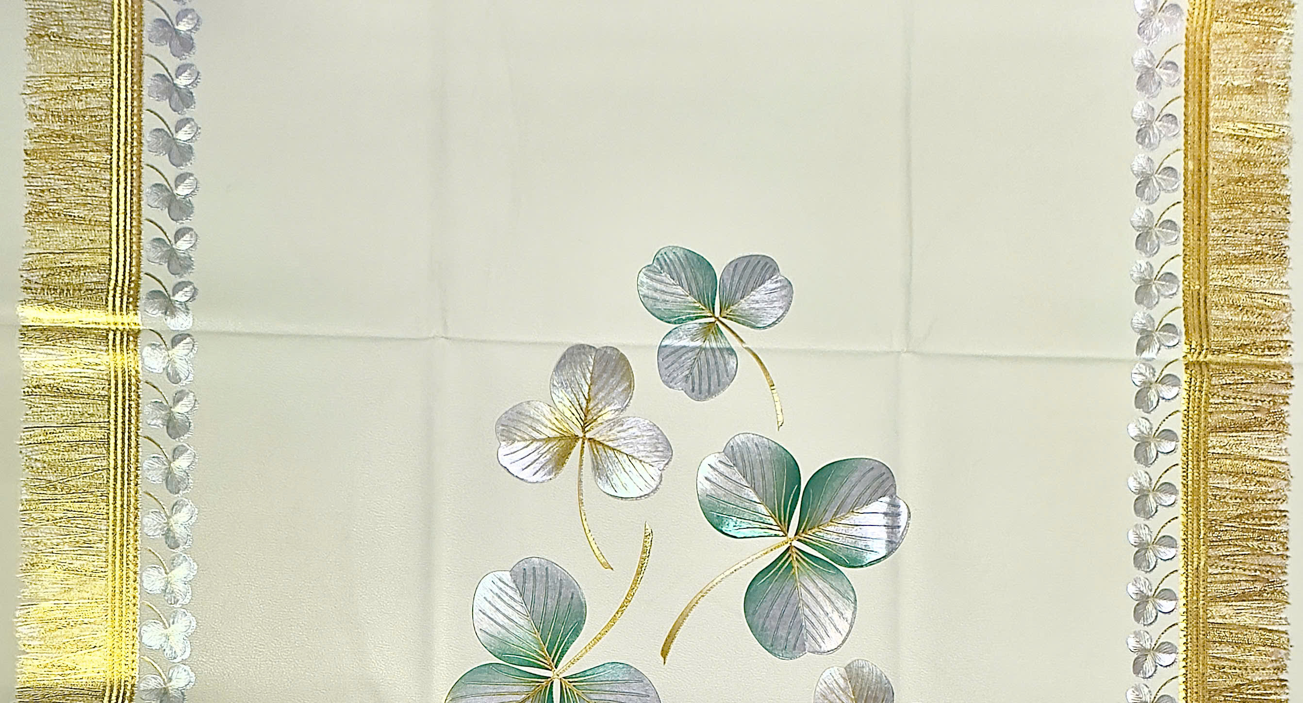 ✨Khăn trải bàn W.751 90x150 cm, hoa văn nổi - nhũ vàng sang trọng không thấm nước, dễ làm sạch