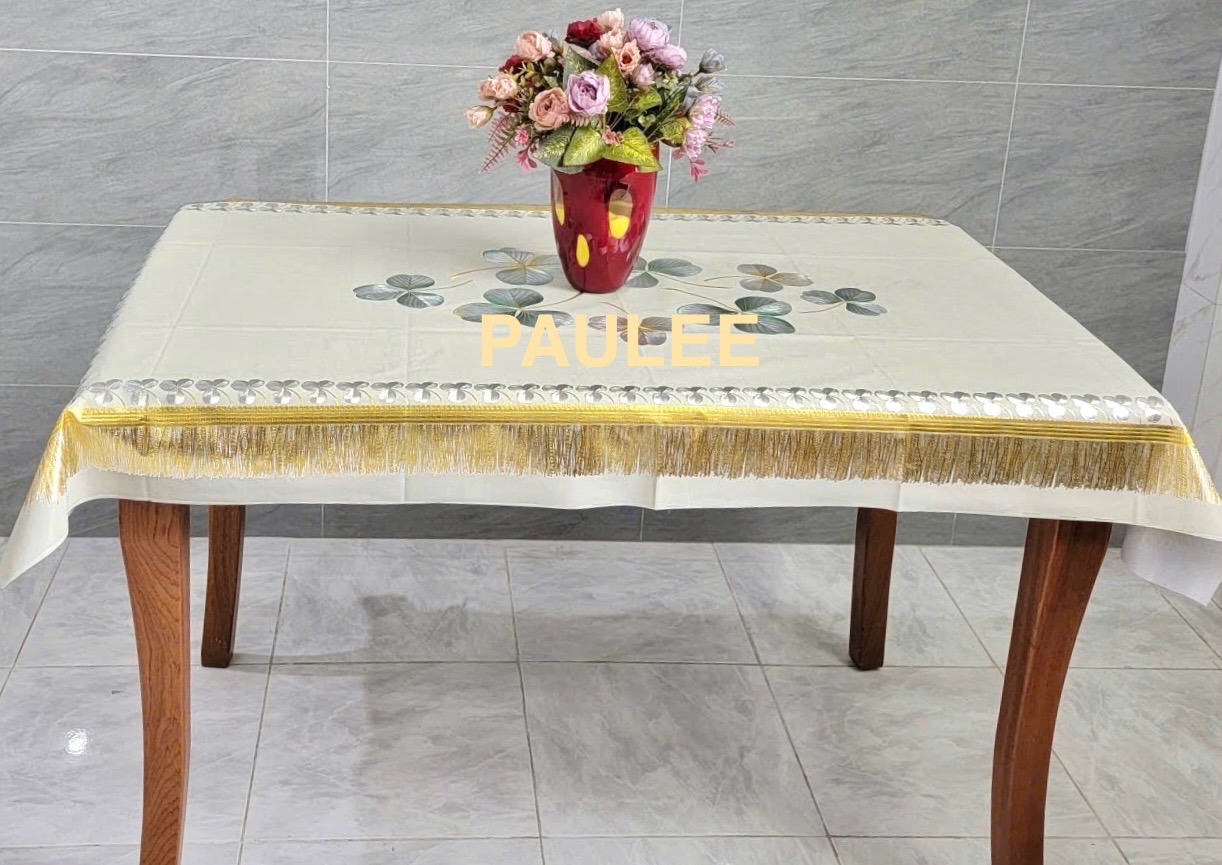 - Khăn Trải Bàn 602 hiệu PAULEE - Chất liệu: Vải Polyester - Kiểu dáng khăn hình chữ nhật. - Kích thước: 135 cm x 180 cm. - Hoa văn kem, góp phần tô điểm