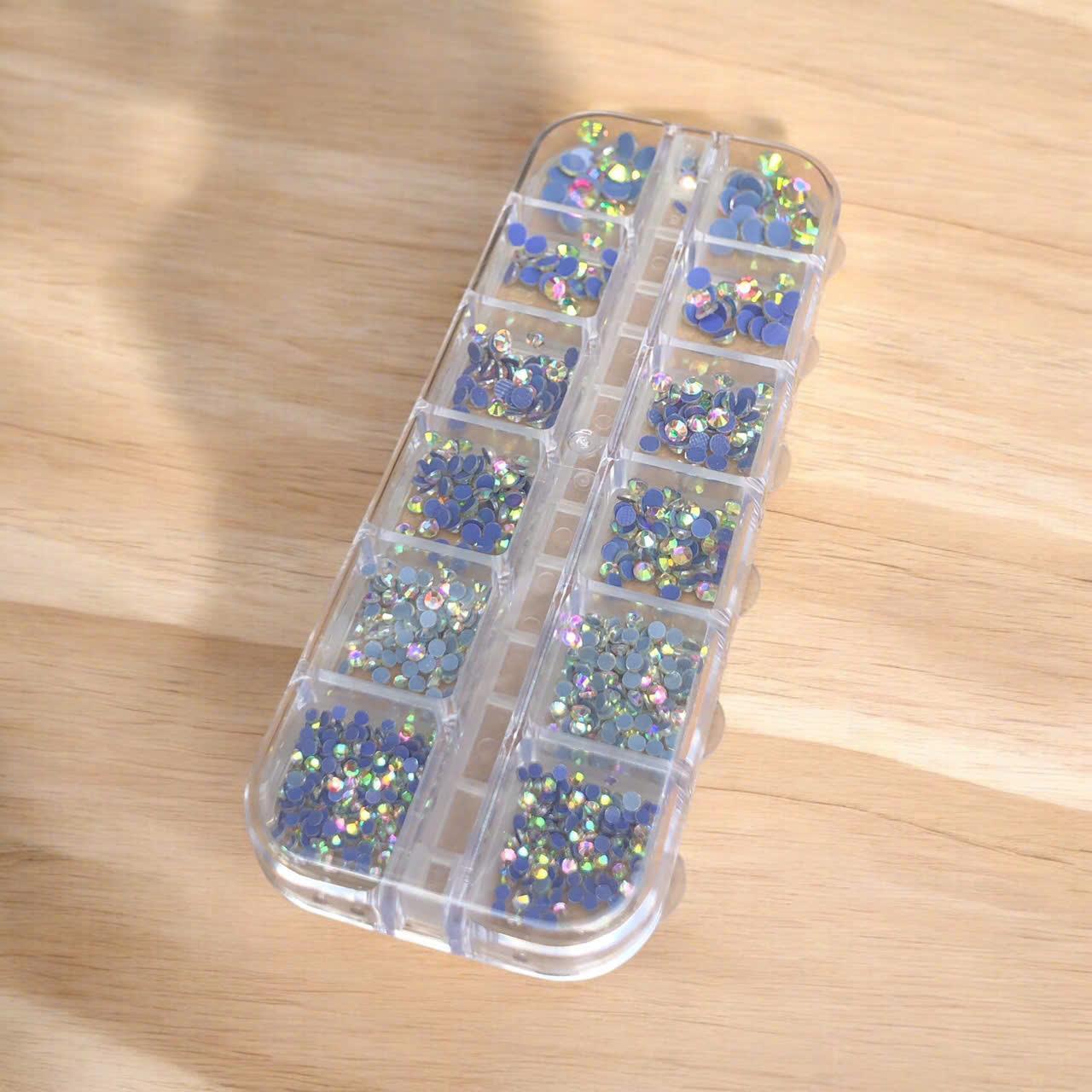 ✨Khay Đá Chân Lưới Keo Mix Size YHB 12 Ngăn, Đính Móng Cao Cấp 1440 Viên, Đá Pha Lê Sáng Lâu, Bám Chắc Làm Nail Màu Trắng AB, Vàng Trà Nữ