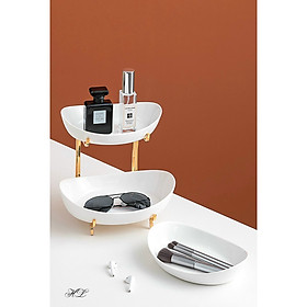 Khay đựng hoa quả, bánh kẹo, mứt Tết 2 tầng, 3 tầng bằng gốm sứ kèm đế kim loại mạ vàng cao cấp.