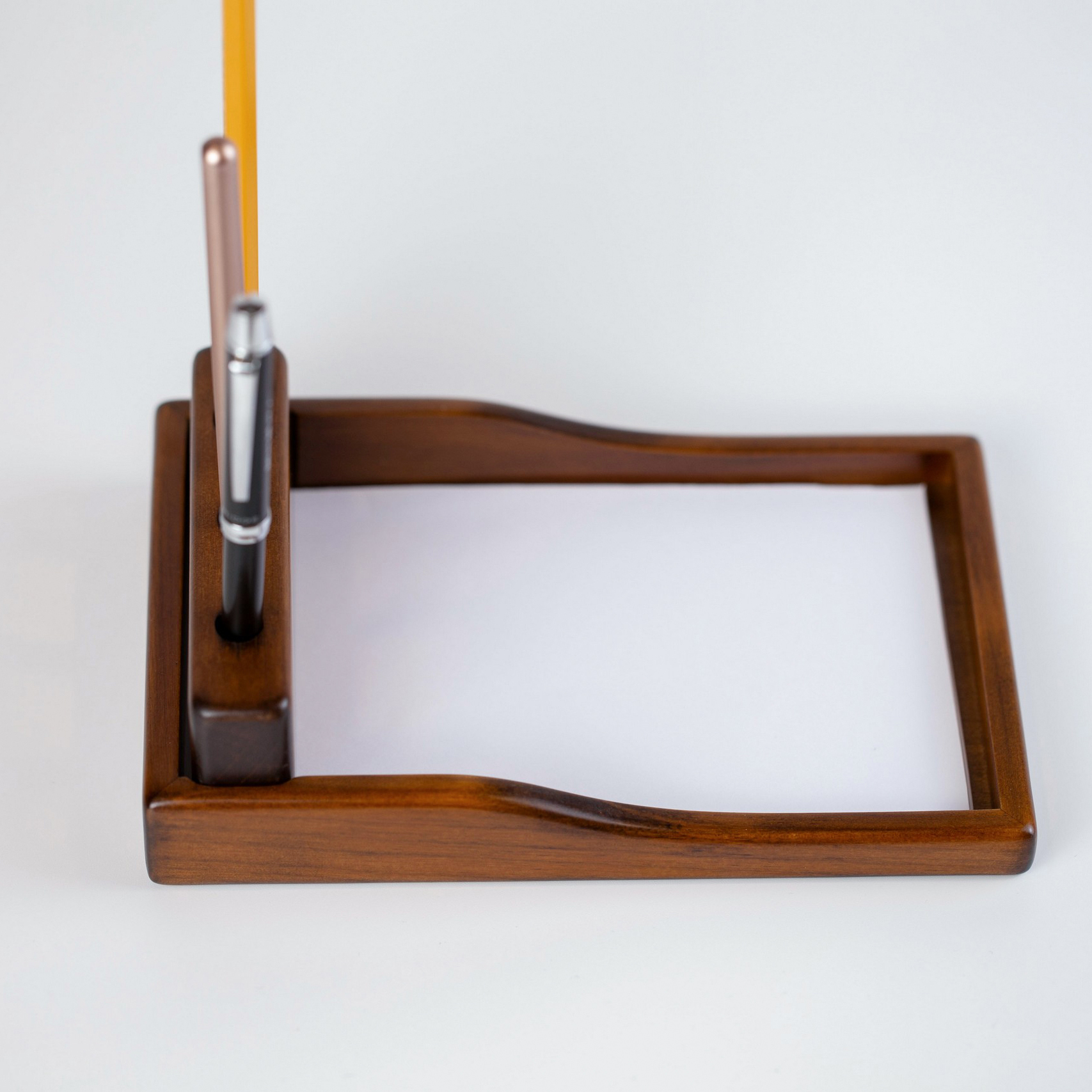 Thiết kế các viền cạnh mặt trước được hoàn thiện theo một đường cong thấp dần, điều này giúp các góc cạnh của khay đựng không làm cản trở việc ghi chép theo thói quen người dùng.