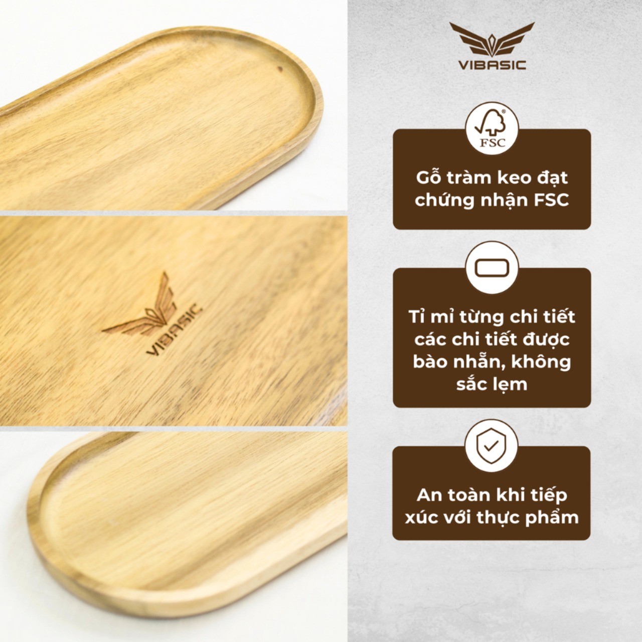✨Khay gỗ keo đa năng hình oval Vibasic, đa dạng kích thước, chụp hình decor đựng đồ trang trí