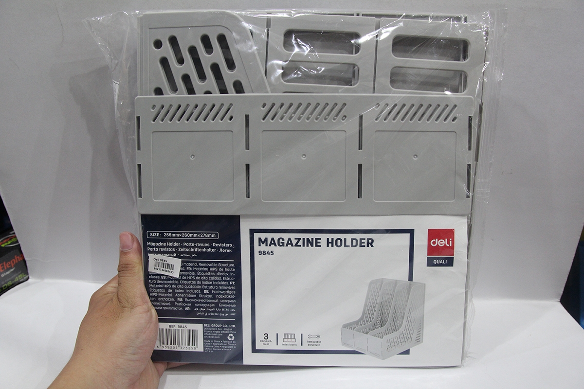 Khay Tài Liệu Nhựa 3 Ngăn Deli 9845 được thiết kế 3 ngăn dạng đứng, phù hợp để lưu trữ các loại tài liệu hoặc các dụng cụ văn phòng phẩm khác. Các chi tiết nhựa của sản phẩm được gia công sắc sảo...