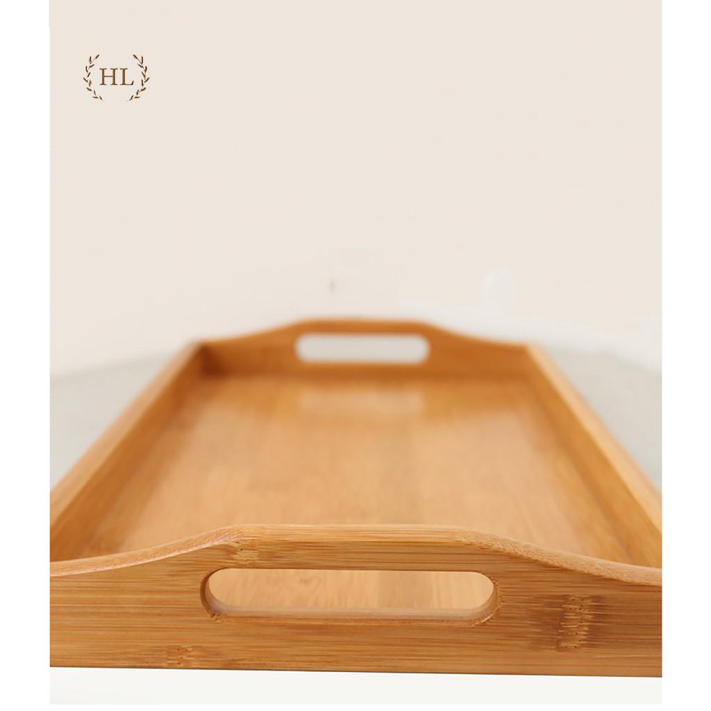 Khay gỗ chữ nhật đựng trà bánh được làm từ chất liệu gỗ tre tự nhiên cao cấp, tinh tế trong từng đường nét, màu sắc ấm dịu và gần gũ Khay gỗ trang trí