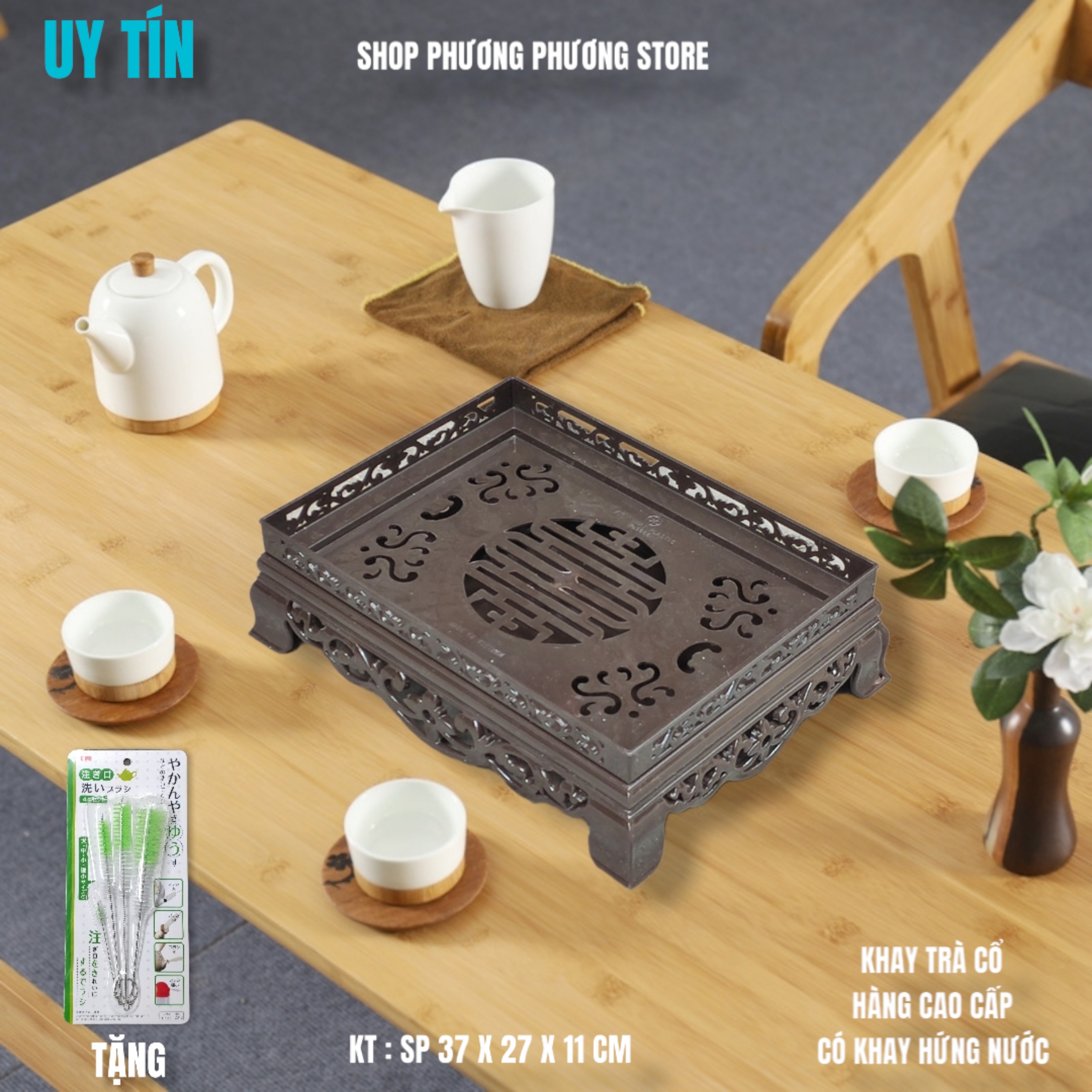 ( HÀNG CAO CẤP ) KHAY TRÀ KIỂU DÁNG CỔ SANG TRỌNG CÓ KHAY HỨNG NƯỚC ( TẶNG SÉT 4 CHIẾC CỌ VỆ SINH VÒI ẤM NỘI ĐỊA NHẬT BẢN