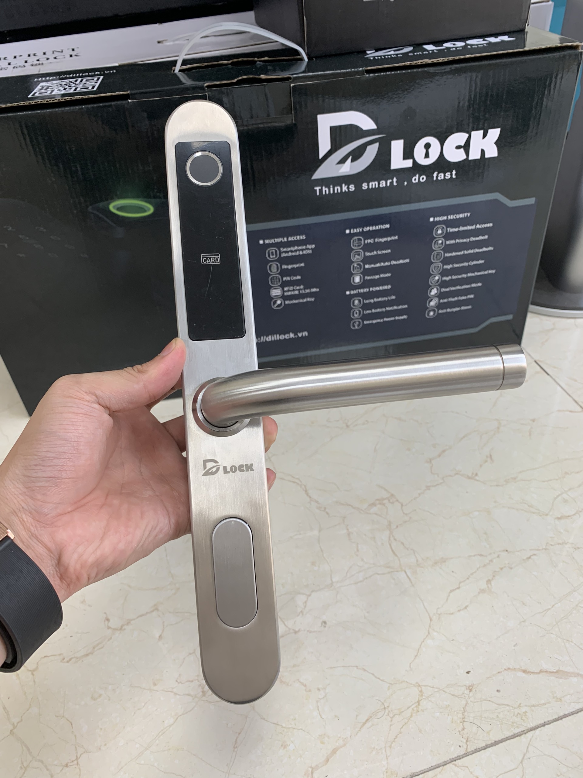 Khóa cửa vân tay điện tử thông minh cao cấp dùng app cửa nhôm kính, cửa thép và cửa hệ 55 Vát Cạnh, khóa cửa Smart Lock bảo hành 30 tháng chống nước Chính Hãng DILLOCK DLF2 Khóa cửa thông minh DILLOCK là loại khóa điện tử được thiết kế để thay thế khóa cửa truyền thống với những tính năng mở cửa cao cấp và an toàn hơn như mở bằng vân tay, thẻ từ, mã số hoặc mở cửa thông qua Smartphone cũng như gửi những cảnh báo xâm nhập trái phép về điện thoại của bạn. Khóa ĐIỆN TỬ VÂN TAY THÔNG MINH ra đời nhằm tăng cường tính bảo mật cho ngôi nhà, mang đến sự tiện nghi cho người sử dụng, nâng cao chất lượng cuộc sống. Thông Số Kỹ Thuật Khóa Thông Minh DLF2 Chất liệu Inox 304 Nguồn 4 pin AA akaline Tuổi thọ pin 5000 -6000 chu kỳ mở Cảm biến vân tay Công nghệ nhận dang Bán dẫn tiên tiến nhất hiện nay Nguồn khẩn cấp Bộ sạc USB Nhiệt độ làm việc -15~55℃ Chìa cơ 2 chìa APP sử dụng Ttlock Các phương thức mở khoá: