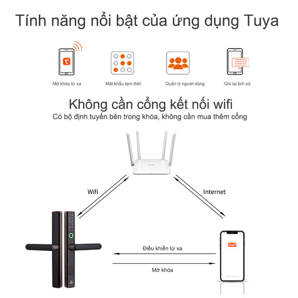 Khóa vân tay cửa nhôm PASINI ứng dụng app tuya mở cửa linh động cho người dùng